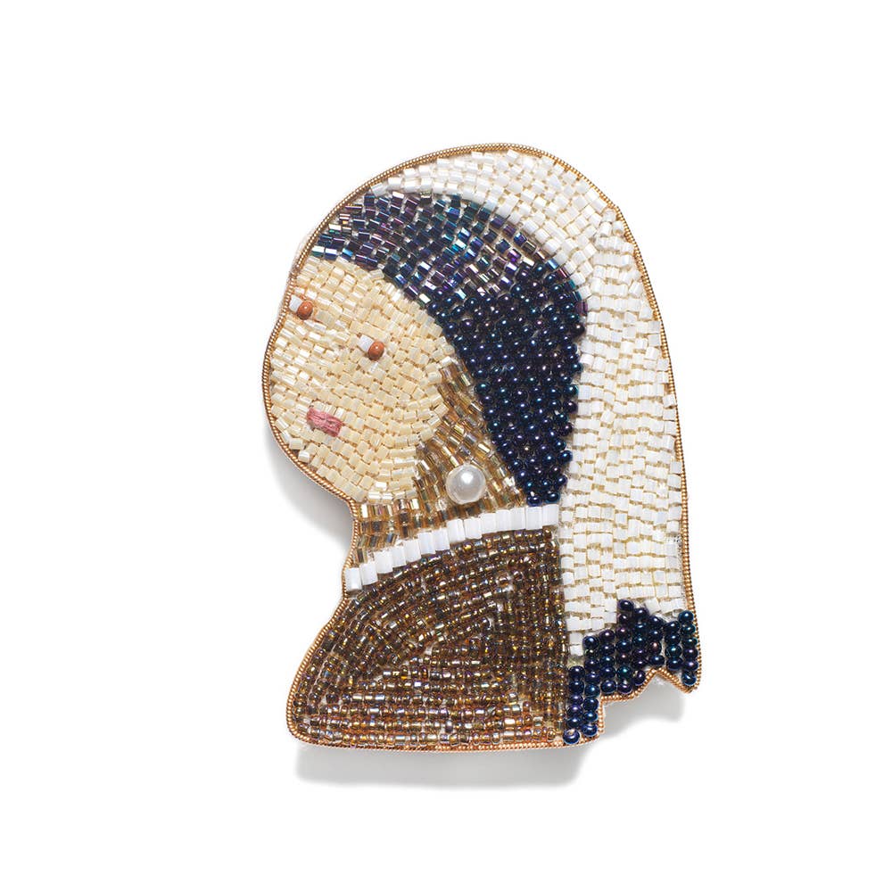 Spilla ricamata a mano ispirata a un ritratto di Frida Kahlo. Altezza di 7 cm, ricamo con perline e ago realizzato interamente a mano.