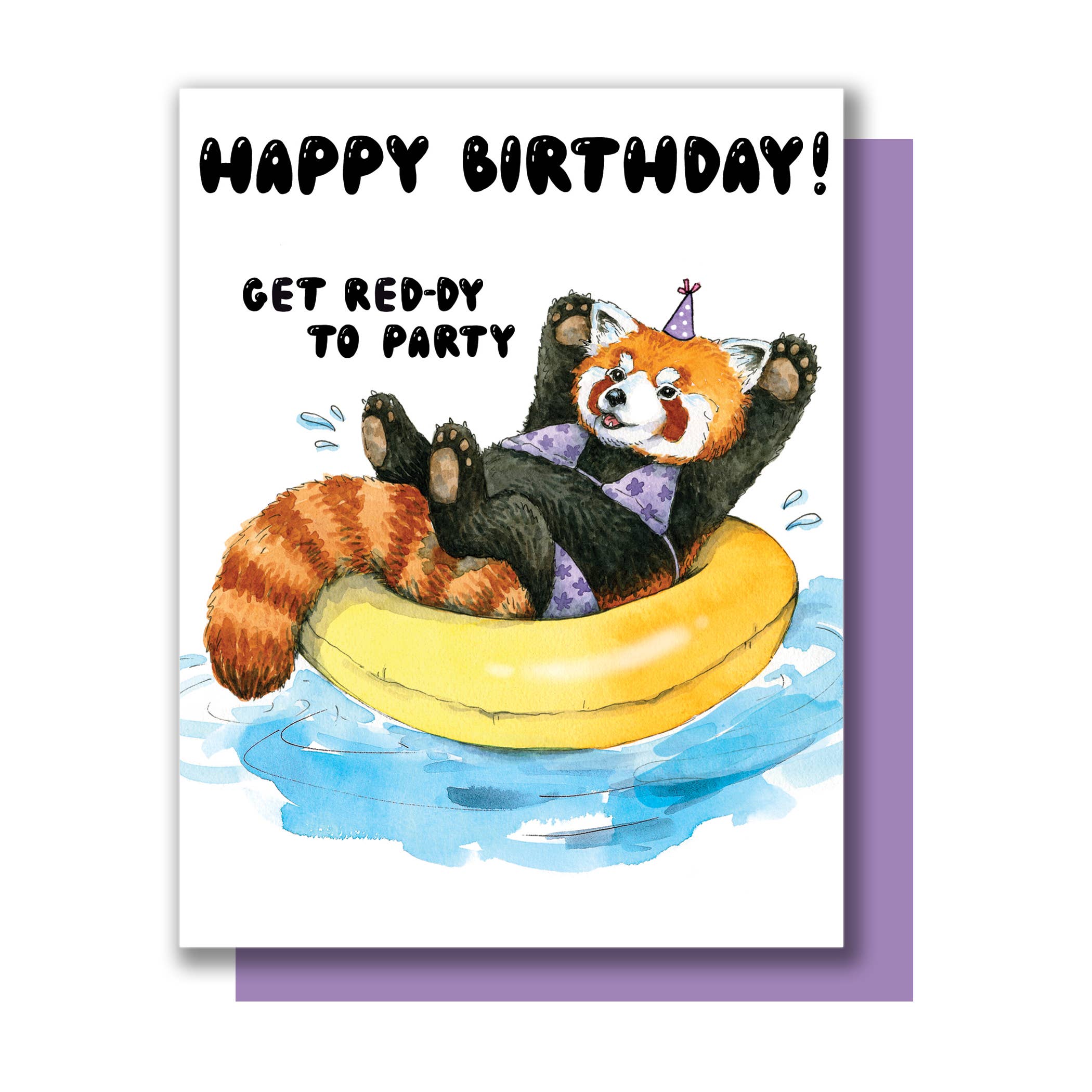 Scritta a mano «Hope Your Birthday Rocks» abbinata a iraci di roccia illustrati ad acquerello che indossano cappelli da festa. Carta A2 con un'illustrazione originale ad acquerello stampata su carta da 130 libbre. Viene fornito con una busta di carta viola con risvolto profondo in una custodia protettiva in cellophane. Dimensioni: A2 (4,25 «x 5,5")