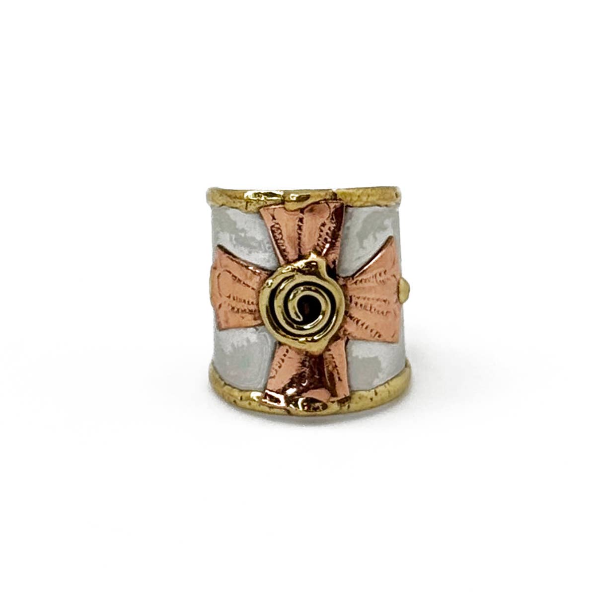 L'anello misto in metallo Janya - Sun Ray è un anello regolabile sorprendente realizzato con una miscela di metalli di alta qualità, che unisce acciaio inossidabile, rame e ottone per un effetto radiante e multitonale. Ispirato al calore e all'energia dei raggi solari, questo anello presenta un design inciso unico che cattura magnificamente la luce. La sua fascia regolabile garantisce una vestibilità comoda per qualsiasi dito, rendendolo un accessorio versatile che si adatta a qualsiasi stile. Ideale come regalo o come pezzo distintivo, l'anello Sun Ray aggiunge un tocco di eleganza boho e fascino senza tempo a qualsiasi collezione di gioielli.