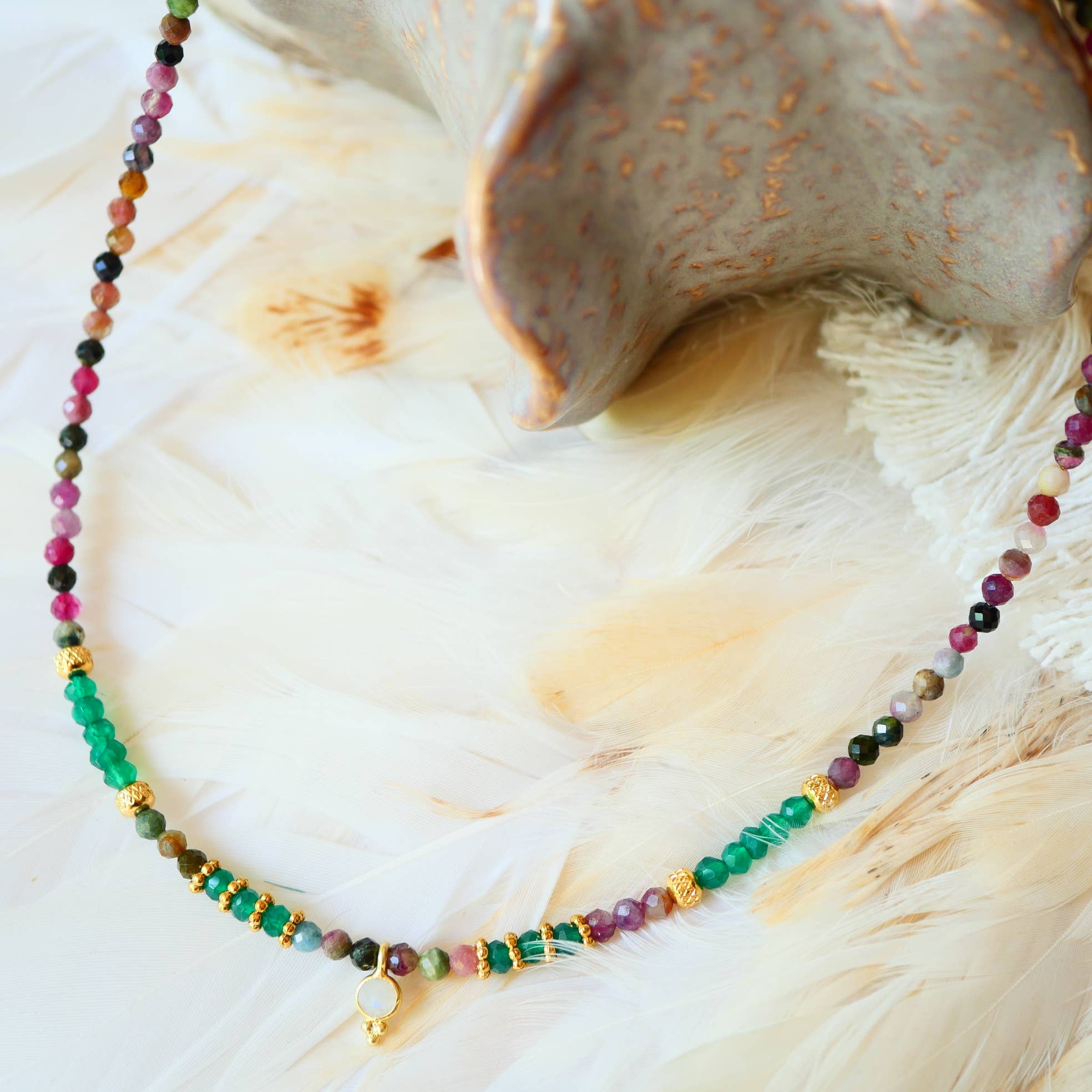 L’histoire de Ginandger est une histoire de voyages avant tout. Un pays de prédilection : l’Inde. Une histoire de voyage intérieur, de découverte(s) et de connexion à des énergies et des êtres. Une révélation totale pour moi, dans ce pays si clivant entre modernité et tradition. Un rapport au temps et la relativité totalement différentes, de nous, occidentaux. J’y suis allée chercher la première fois des pierres, et aujourd’hui, lorsque je m’y rends chaque année, c’est une connexion à des énergies et des inspirations que je rencontre. Des cultures, des hommes et des femmes, des traditions et une force intérieure incroyable. Telle une exploratrice, je suis à la recherche de ces pierres fines qui permettront de créer des bijoux amulettes en totale harmonie intérieure. Du montage à l'assemblage, tout est réalisé à la main, dans notre atelier à Paris. Notre mission est de créer des bijoux accessoires, je les imagine tels des amulettes portant des significations profondes et de bienveillance. Des bijoux qui vous inspirent à affirmer votre propre puissance et à poursuivre votre propre voyage intérieur. Chaque pièce est créée, à Paris avec une intention spécifique, en utilisant des pierres naturelles, soigneusement sélectionnées. Je suis persuadée que chaque pierre possède sa propre histoire qui sera révélée au port du bijou réalisé. Je pense que chaque personne a une essence unique et les différentes collections sont conçues pour refléter cela.