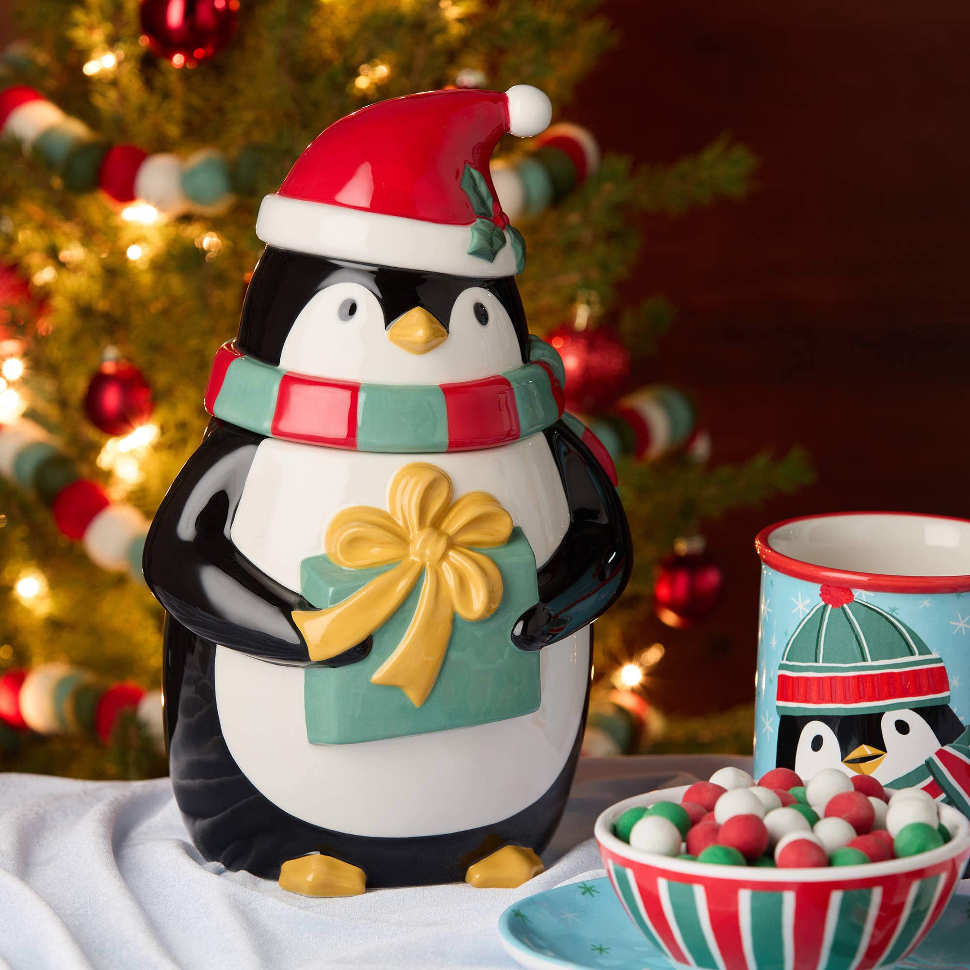 The Nutcracker Parade set of 4 3-D Mugs (Nutcracker, Baker, Santa, and Elf) brings a delightful touch of whimsy to your holiday table. Each 18 oz. mug features a playful, hand-painted 3-D design that captures the joyful essence of the Christmas season. From the jolly Santa with his festive candy cane and decorated tree, to the charming Elf with a gift in hand, and the dapper Nutcracker and Baker, this set embodies classic holiday cheer. Crafted from durable ceramic, these mugs offer both beauty and functionality, perfect for serving hot cocoa, coffee, or tea. The mugs are handwash recommended to preserve their vibrant details and festive charm.