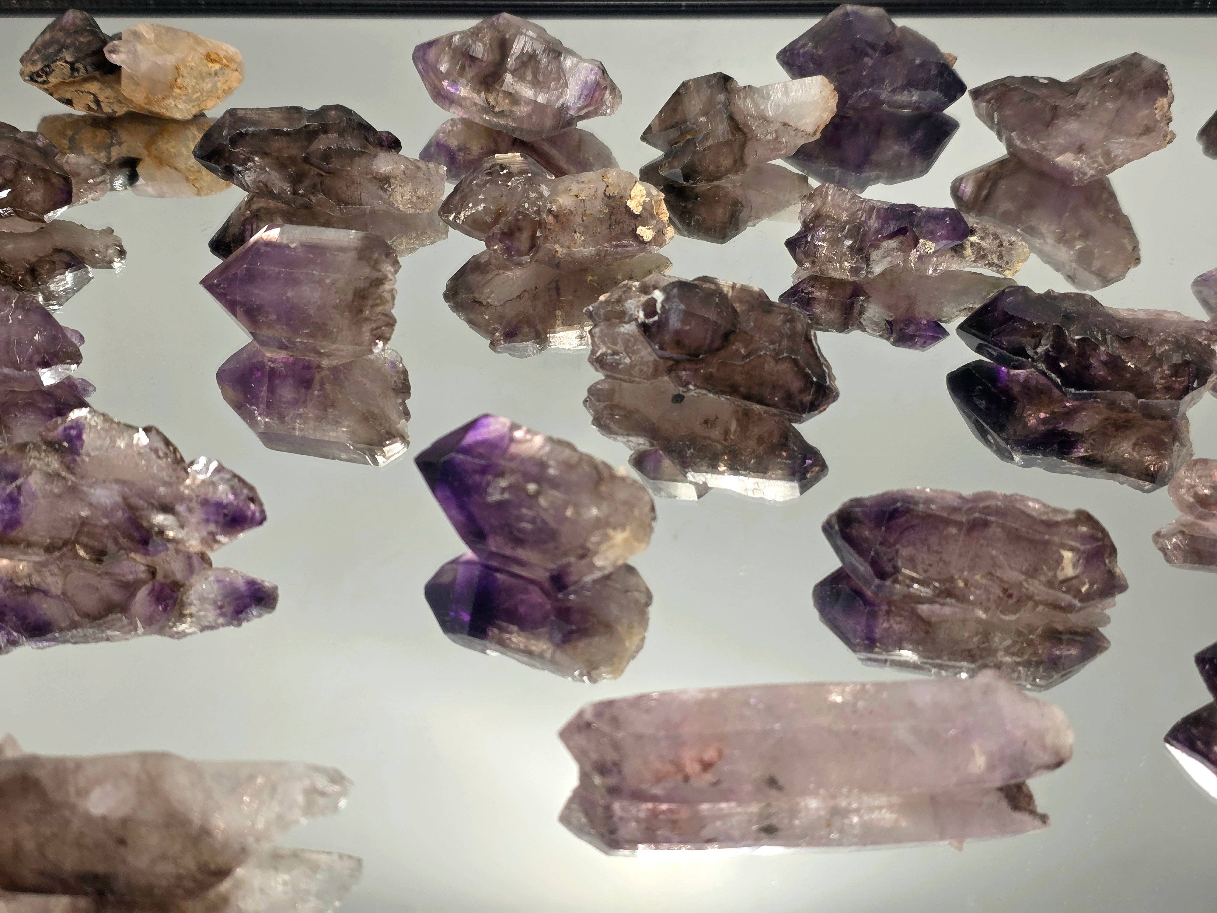 Natural Brazilian Pink Amethyst Quartz Crystal Clusters, All with polished sides and a wide range of contrasts. Size: 9.5cm average