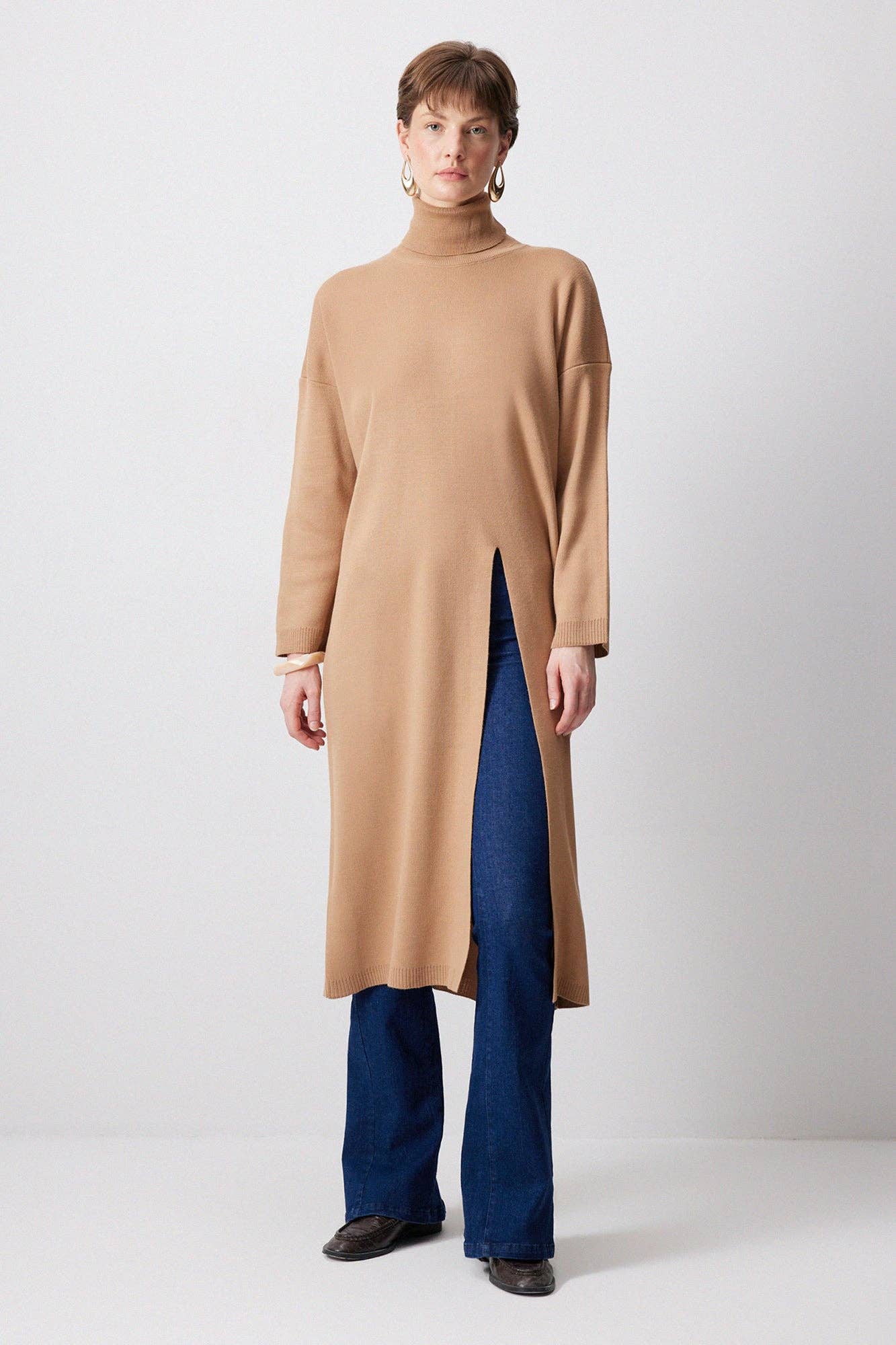 * Height: 112 cm * Inseam: 65 cm * Chest: 122 cm * Waist: 76 cm * Hip: 88 cm * Sleeve Length: 50 cm * Bottom Height: 101 cm * Model Height: 177 cm * Model Size: S * Fabric: * %100 Acrylic
