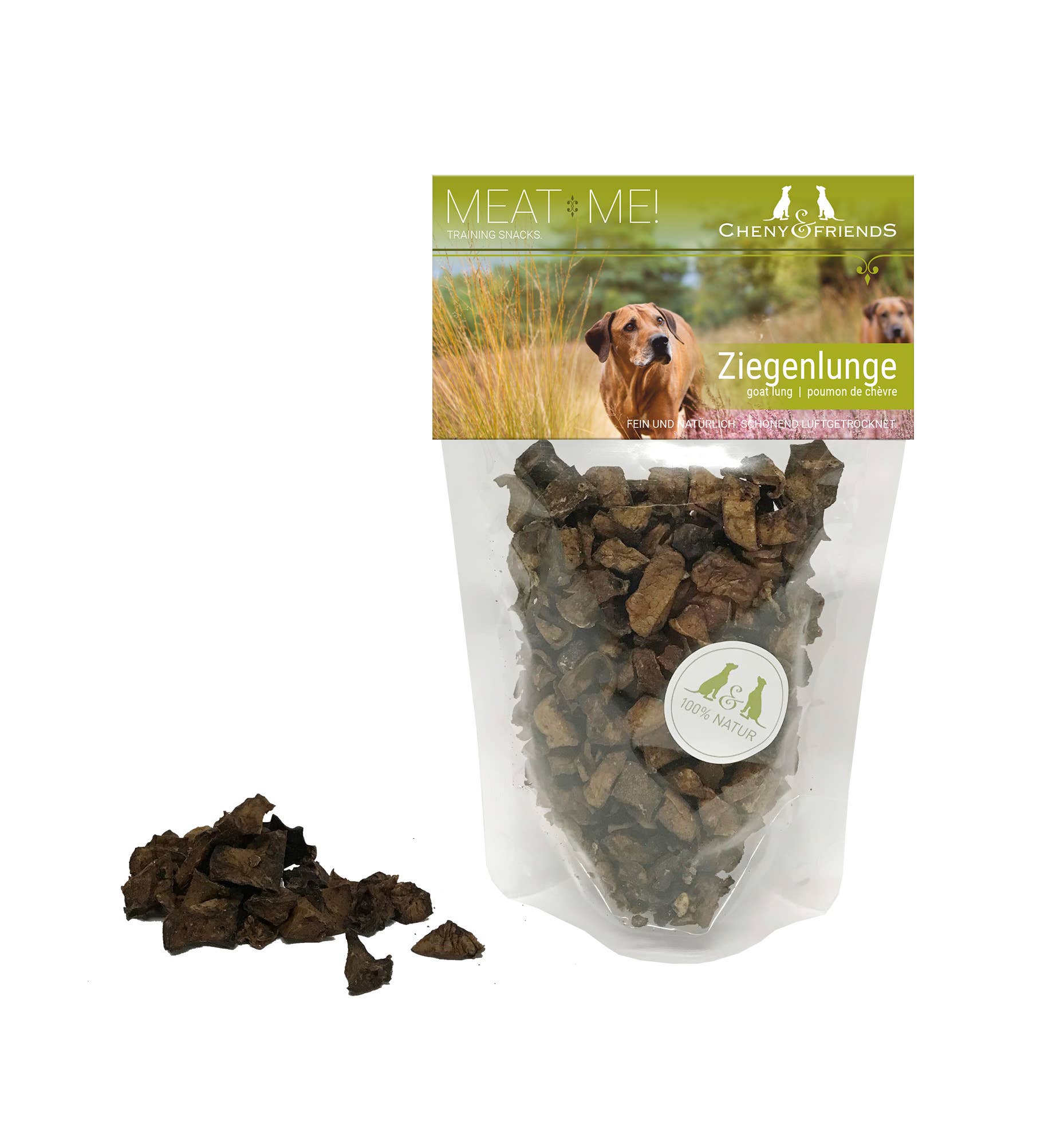 Small pieces of horse lung, the fine and hypoallergenic training reward Pure nature with some advantages: • The tasty snack. • Hypoallergenic • Best offal in food quality. • Intense in flavor, therefore ideal for training, as a reward, or for search games. • Handy small and firm, ideal for training. • Low odor. • Valuable protein as well as important minerals and trace elements. • Air-dried without any additives such as colorants, attractants, or preservatives. • Non-greasy in the hand, light and digestible. Only the best freshly slaughtered raw materials are used. A snack or reward with valuable proteins, minerals, and trace elements. Pleasant in smell. Composition: 100% horse lung Analysis: Crude protein 75.6%, crude fat 7.3%, crude ash 5.4%, crude fiber 0.77% Cube size: approx. 0.5-1 cm x 0.5-1 cm Content: 50g Single feed for dogs. *Please note: These are natural products! Therefore, the shape, color, size, and weight (e.g., in bones) of our flakes, chew items, and biscuits can vary greatly, sometimes even outside the specified details.