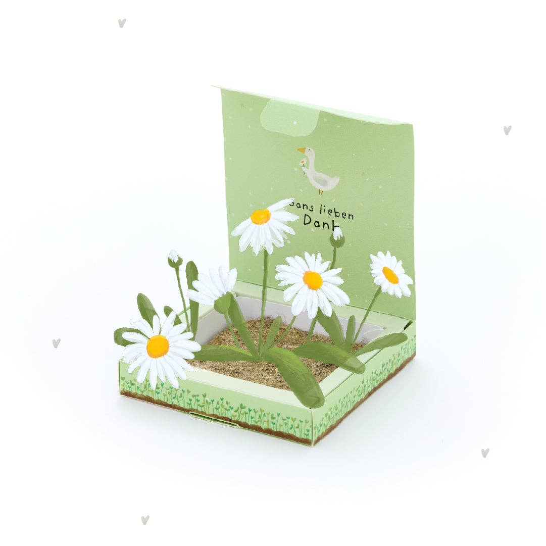 Let joy sprout: This lovingly designed planting box is more than just a small gift - it makes appreciation visibly grow and brings a smile to the recipient's face. A blooming thank you that comes from the heart. A gift full of appreciation: Whether as a farewell gift from kindergarten or elementary school, as an emotional gesture for mom, or simply as a small token of appreciation for coaches & co. - with the cute planting box, you literally say "Thank you for helping me grow." A gift full of symbolic character for teachers, parents, childminders, or educators that will surely be remembered. Everything included: The planting box contains seeds for beautiful meadow daisies, an environmentally friendly growing mat made of 100% hemp, and a thin insert for moisture protection. The hemp mat is 100% compostable and creates a healthy microclimate for ideal growing conditions. A gift that keeps blooming: When the plants grow larger, you can easily transplant them along with the mat into a bed or a larger pot - for long-lasting joy and a small green memory.
