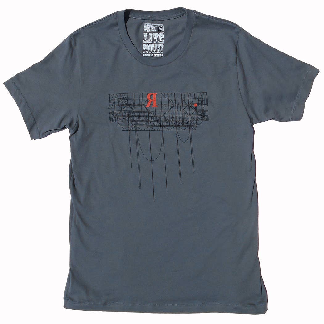 SCAFFOLDING NEGATIVE This graphic tee is printed with an abstraction of the steel scaffolding and truss work under the elevated subway tracks in the outer boroughs of NYC. The tshirt material is the image of the scaffolding, and the printed ink becomes the negative space between. Color - Heather Grey