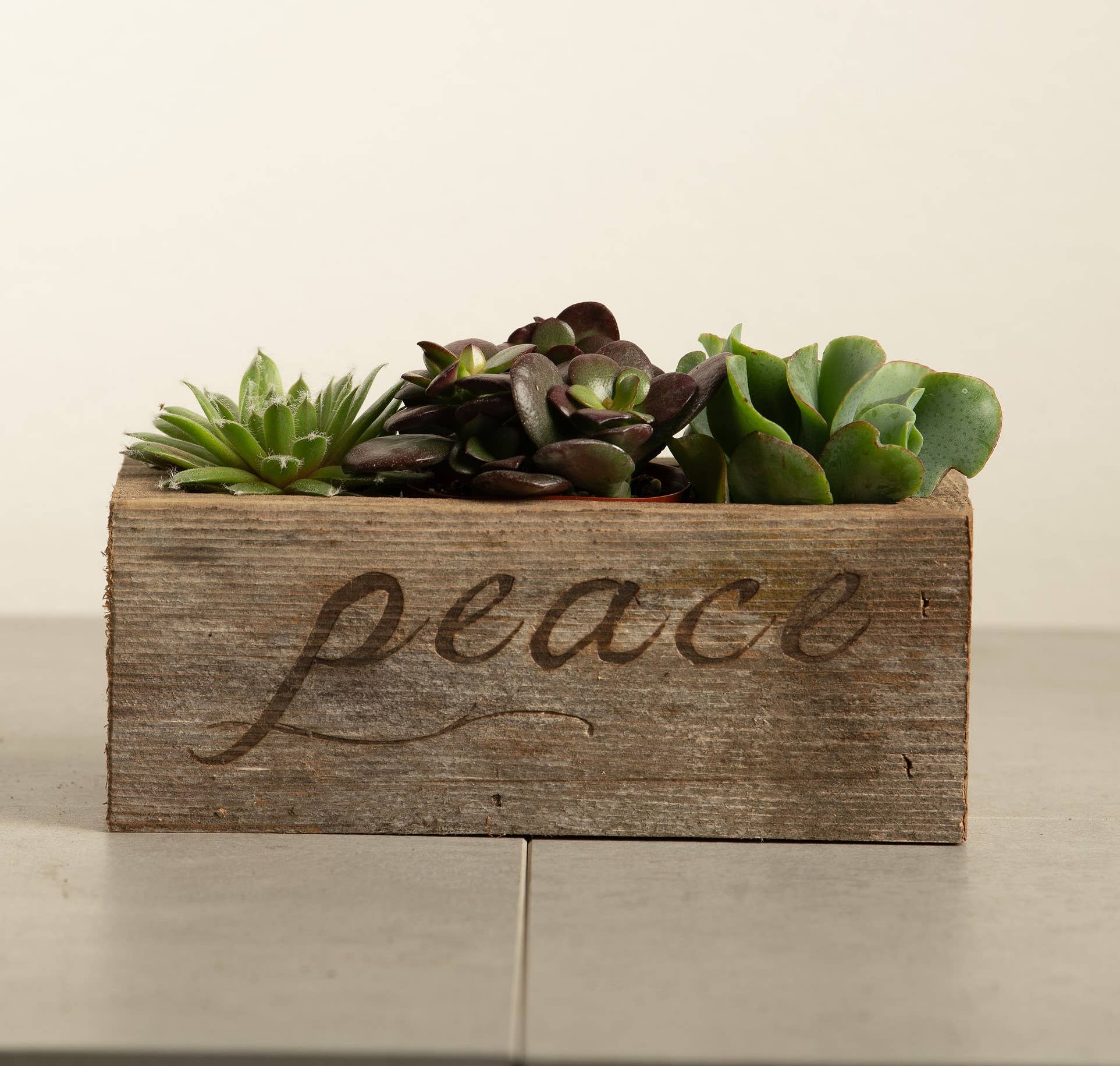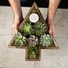 Our rustic hand made Tree shaped planter/tray is made from reclaimed wood and can be filled with your favorite succulents/plants or can serve as an accent tray to keep your home decor items in. Fill with gifts to create a unique Christmas Tree gift tray concept of your own. Keeping the rustic style, the wood is locally sourced and repurposed to give you a truly unique one of a kind functional display piece. Unique variations in the colors and textures of the wood assure you that no two pieces will be exactly alike. The inside wood on the bottom of the tray may be different colors. Small imperfections, such as nail holes and/or knots add to the authentic character of each piece. Naturally weather aged and distressed, these heart planters can withstand the elements outdoors regardless of the weather. NOT watertight. Proudly reclaimed and made in The USA. The dimensions are approximately 15" W x 17.25" T x 3 .75" deep **NOTE - Plants/accessories shown are NOT included