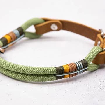 Our FOR LOVELY DOG Spring Green Color Twist rope collar is chic, elegant and colour-coordinated. The combination of design, functionality and high-quality materials makes it the perfect collar, whether for a stroll through the city, a walk in the woods or a visit to the sea. All collars are handmade in our factory with great attention to detail and great emphasis is placed on the selected materials and workmanship. Available dew levels: ø8mm ø10 mm The rope is in Spring Green and the wrap is in Color Twist. The fittings and rings can be selected in stainless steel, brass, rose gold and black, according to your wishes. Our collars are available in 2 different versions: collar with adjustment Pull-stop collar Of course, other sizes are also available on request