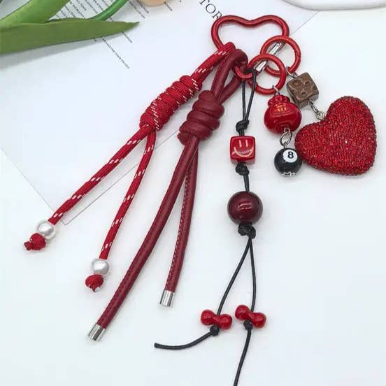 Dipped Shop - Wholesale Keychain - Women's - Cute Leather Heart Braided Keychain Bag Charm DP257653