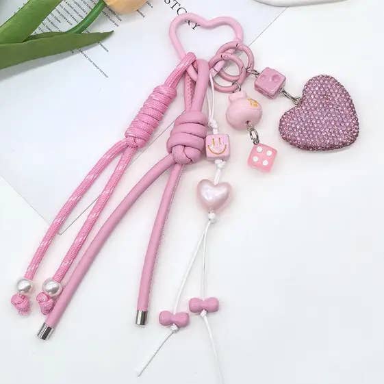 Dipped Shop - Wholesale Keychain - Women's - Cute Leather Heart Braided Keychain Bag Charm DP257650