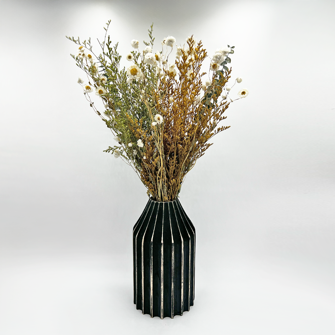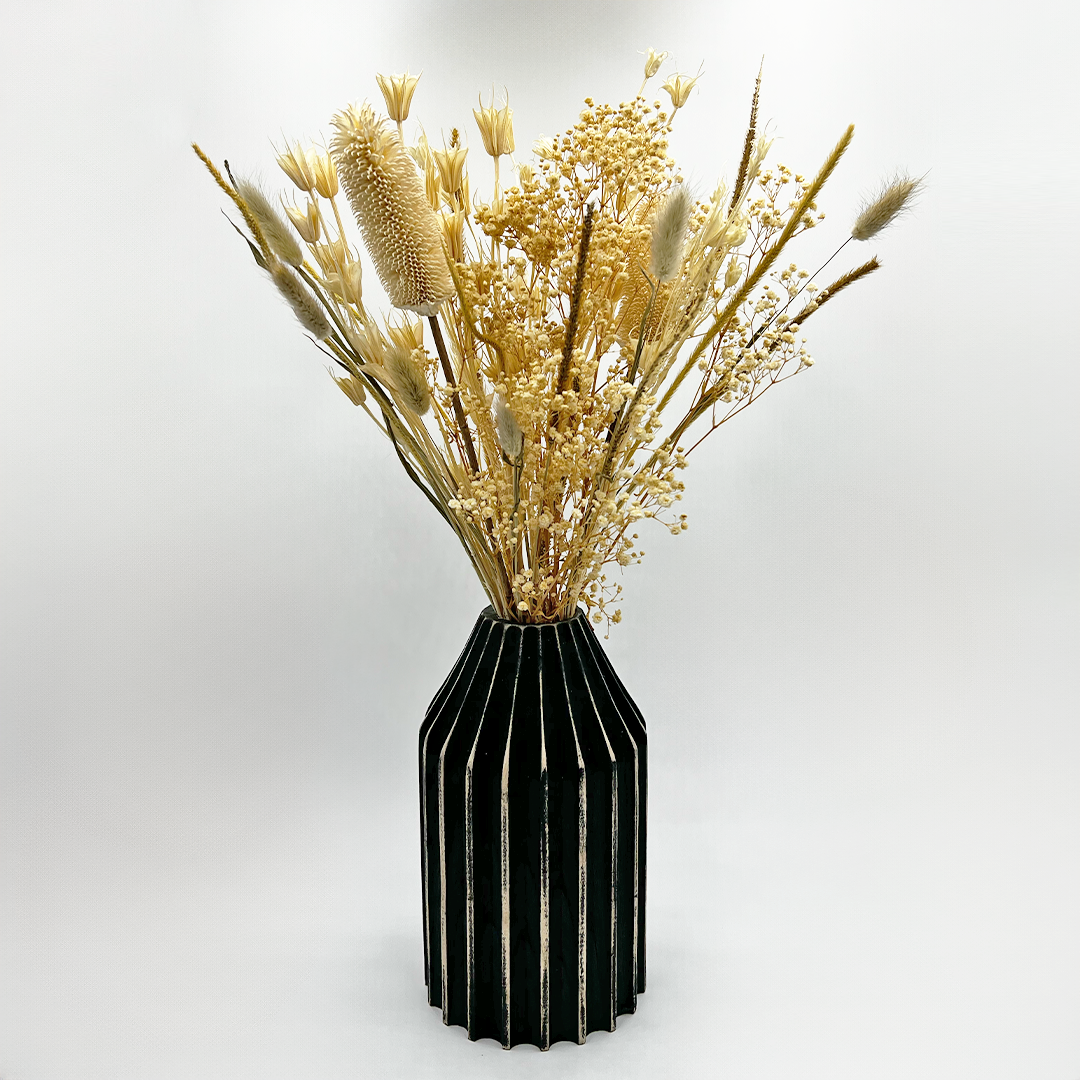 This elegant bouquet of preserved flowers combines the natural beauty of bunny tails, valentin grass, pampas grass, and asparagus flower. The preserved foliage and blooms create a timeless and sophisticated arrangement that will enhance any space. The unique blend of floral varieties adds depth and interest to the bouquet, making it a perfect centerpiece or gift that offers lasting beauty without the need for maintenance. Please note that this item is a bouquet only and does not come with a vase. The bouquets come in 3 sizes: Small: 10 inches in length Medium: 14 inches in length Large: 20 inches in length