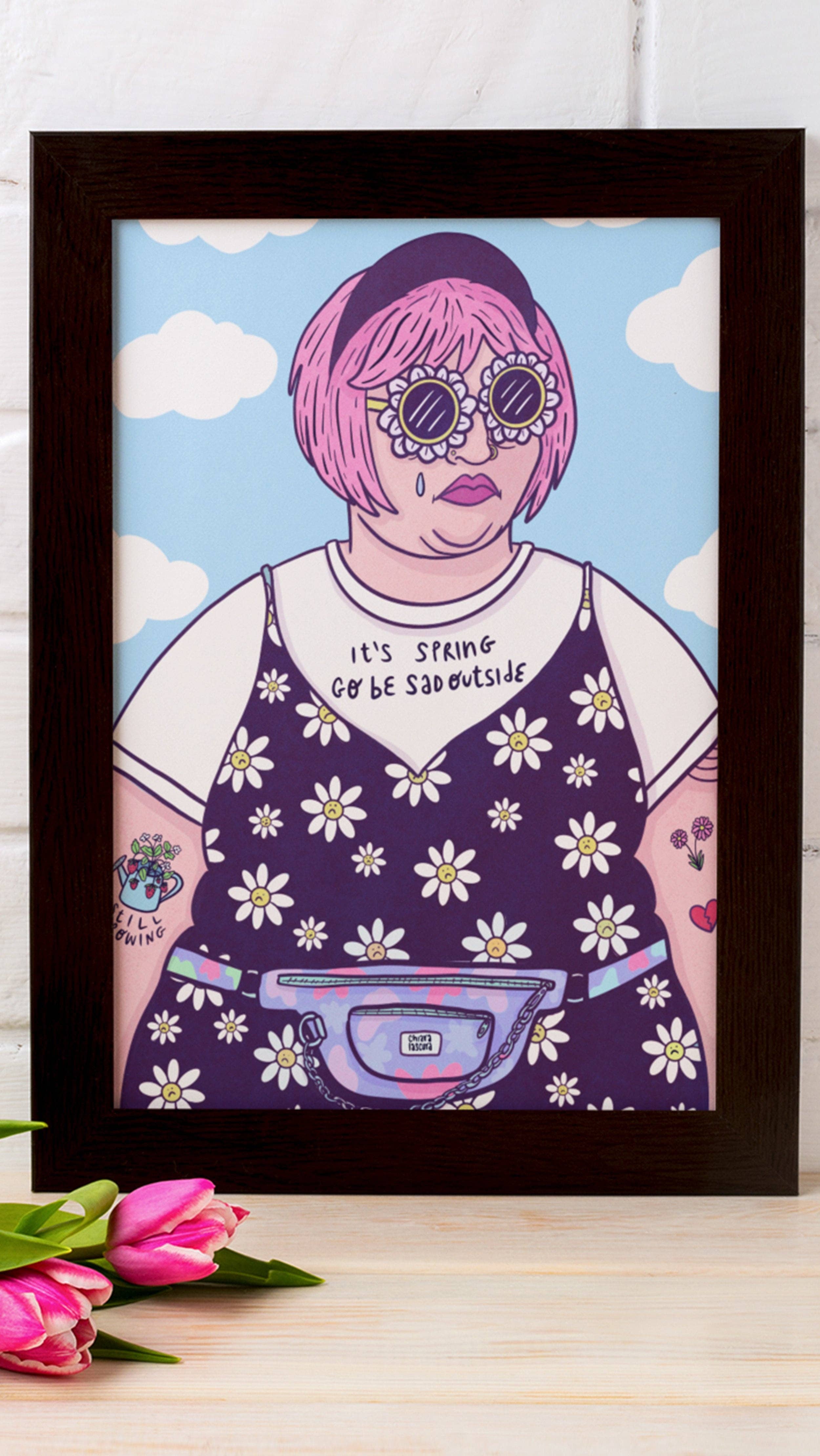 Hallo! Ik ben Chiara, een Italiaanse illustrator en activiste. Ik ontwerp en verkoop geïllustreerde stickers, spelden, knopen, mokken, draagtassen en t-shirts geïnspireerd op lichaamspositiviteit, feminisme, zusterschap, queerheid, dierenbevrijding en geestelijke gezondheid. Ik werk als freelancer sinds 2010, het jaar waarin ik Chiaralascura oprichtte en mijn eerste kleine collectie lanceerde: een paar milieuvriendelijke t-shirts met een veganistisch thema. Sindsdien ben ik ook gaan werken als freelance illustrator en grafisch ontwerper in opdrachten voor organisaties, festivals en merken en het maken van logo's, merkidentiteit, posters en merchandise voor hun projecten. Ik ben altijd een feministe geweest en de laatste jaren ben ik feminisme, vetacceptatie en lichaamspositiviteit in mijn werk gaan integreren. In 2018 was ik medeoprichter van Belle di Faccia, een activismeproject en -organisatie die tot doel heeft het bewustzijn over vetfobie te vergroten en de vetbevrijding in Italië te bevorderen.