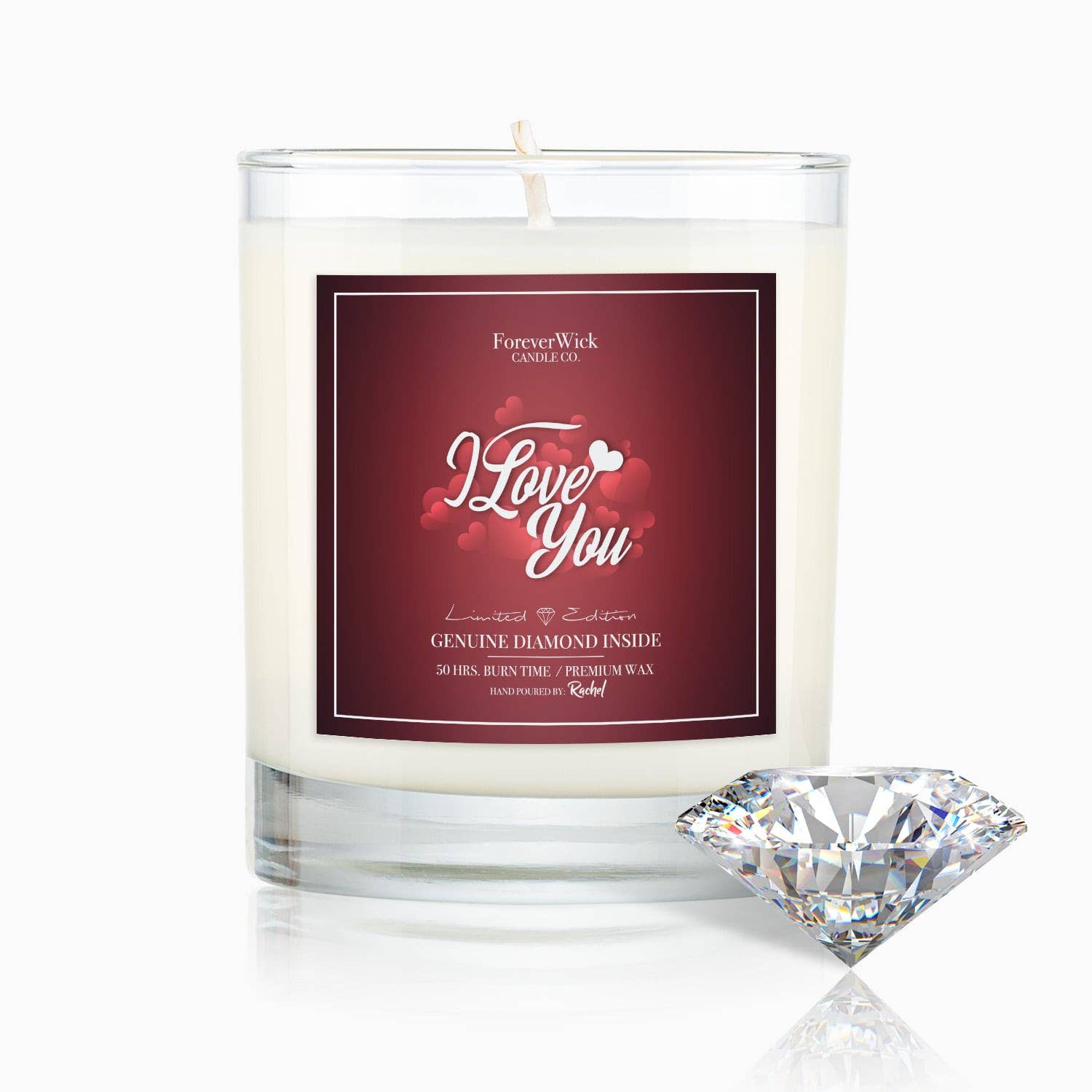 Bericht voor aangepaste bestellingen. Echte diamanten in elke kaars, gewaardeerd van $22 - $12.000! Verzamel en ruil je diamanten in voor op maat gemaakte gouden en diamanten sieraden! Het begon allemaal op een opmerkelijke eerste date, toen we simpelweg niet uit elkaar konden gaan na het diner. Dus begonnen we aan een impulsief winkelavontuur en stuitten we op een betoverende kaars. Die kaars werd getuige van onze allereerste gedeelde maaltijd en de onvergetelijke filmmarathon die ons tot zonsopgang in de ban hield. Elke flikkering herinnerde ons aan onze bescheiden begin. Toen de kaars uiteindelijk opbrandde, voelde het ondenkbaar om hem weg te gooien, gezien zijn enorme sentimentele waarde. En zo werd het concept van ForeverWick Candle geboren. Nu, door elke kaars met een diamant te verrijken, willen we je een levenslang aandenken bieden, die gekoesterde momenten met je dierbaren vereeuwigend. Mogen deze stralende schatten altijd herinneringen oproepen die je hart raken.