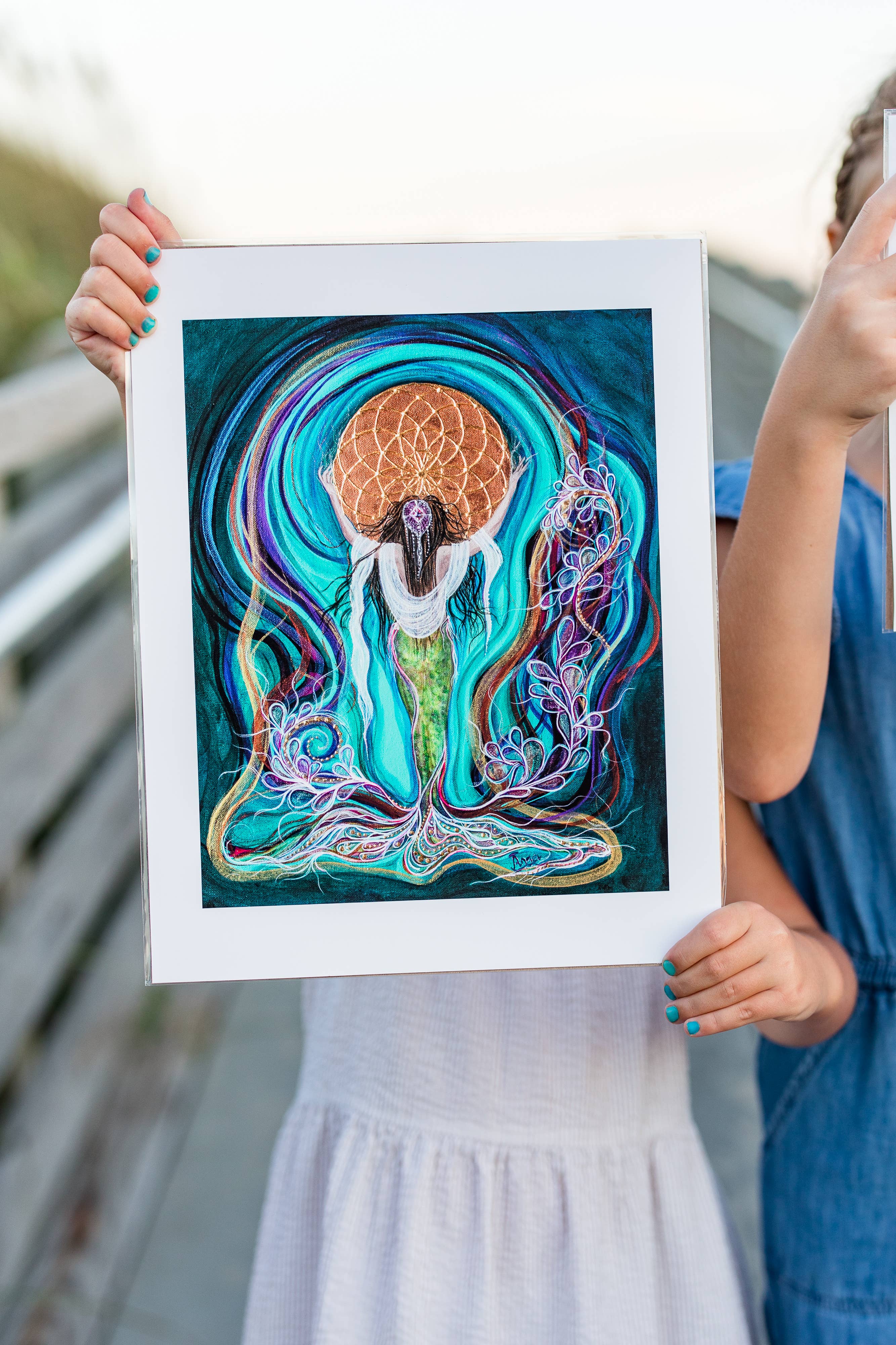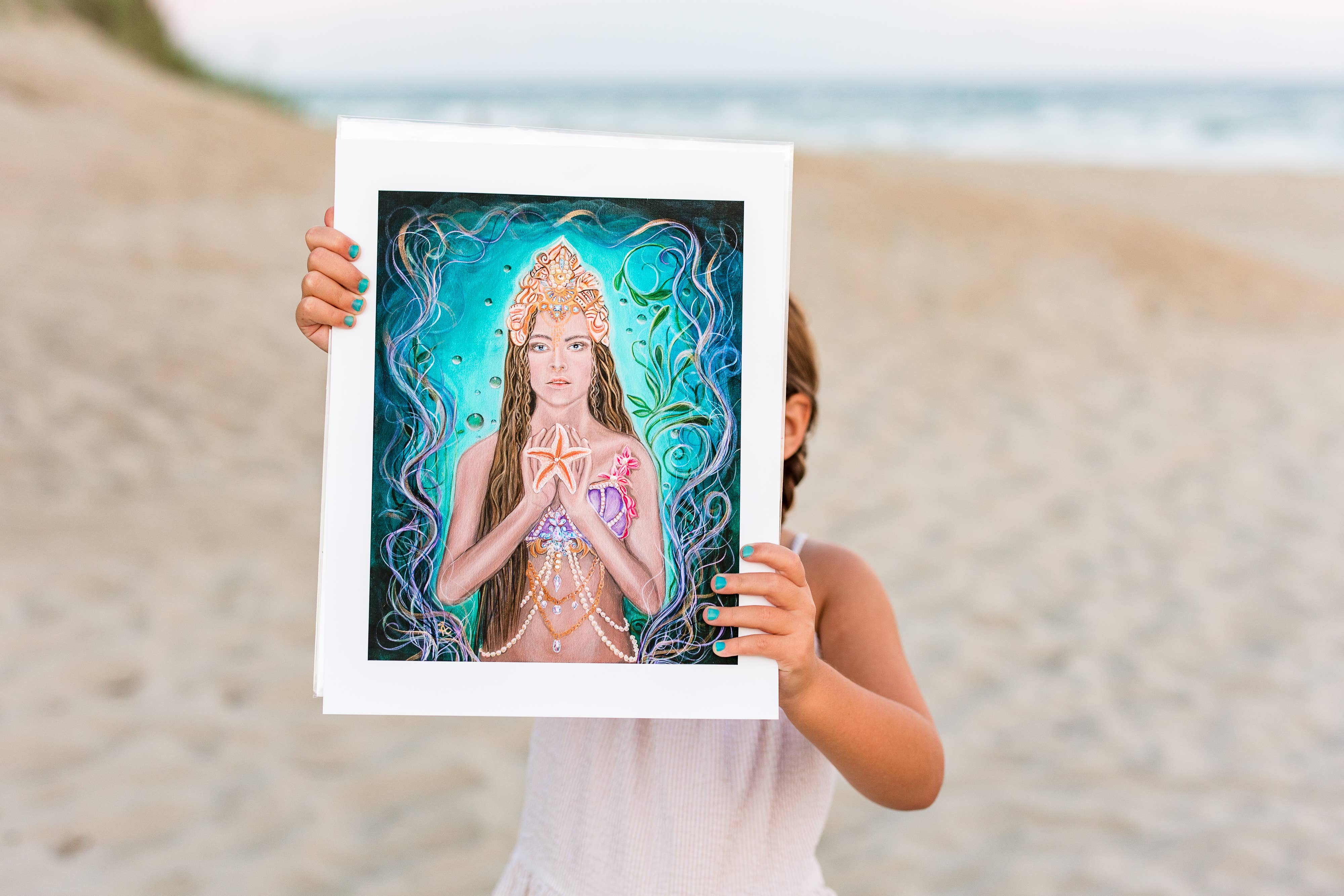 Ik schilder vanuit het hart, geïnspireerd door de oceaan, het licht en de steeds veranderende schoonheid van Hatteras Island, North Carolina. Mijn zeemeerminnen zijn weerspiegelingen van het ritme van de natuur, emotie en de stille kracht die in de zee te vinden is. Elk stuk wordt geleid door intuïtie en draagt de kalme, stralende energie die ik voel tijdens het creëren. Mijn hoop is dat deze zeemeerminnen een gevoel van sereniteit en verwondering brengen naar de ruimtes die ze betreden, en ons herinneren aan de schoonheid, vrijheid en geest van het water dat ons allemaal verbindt.
