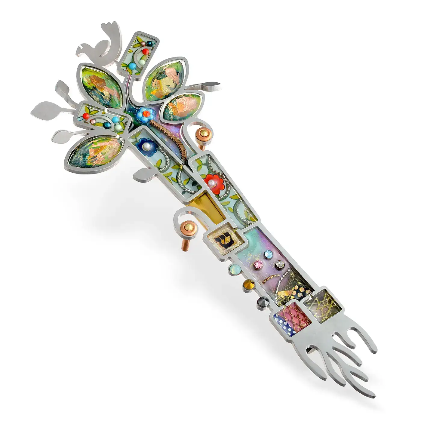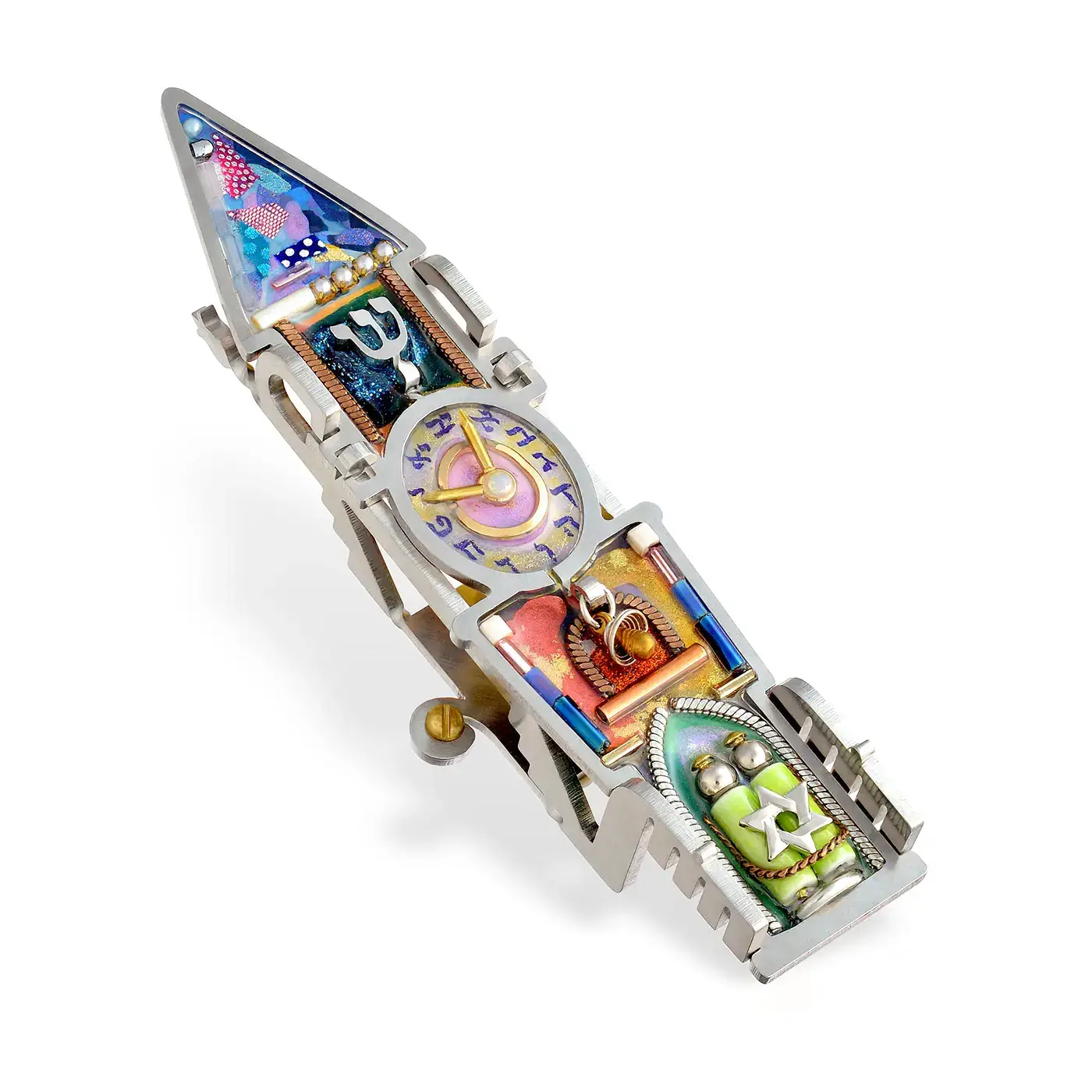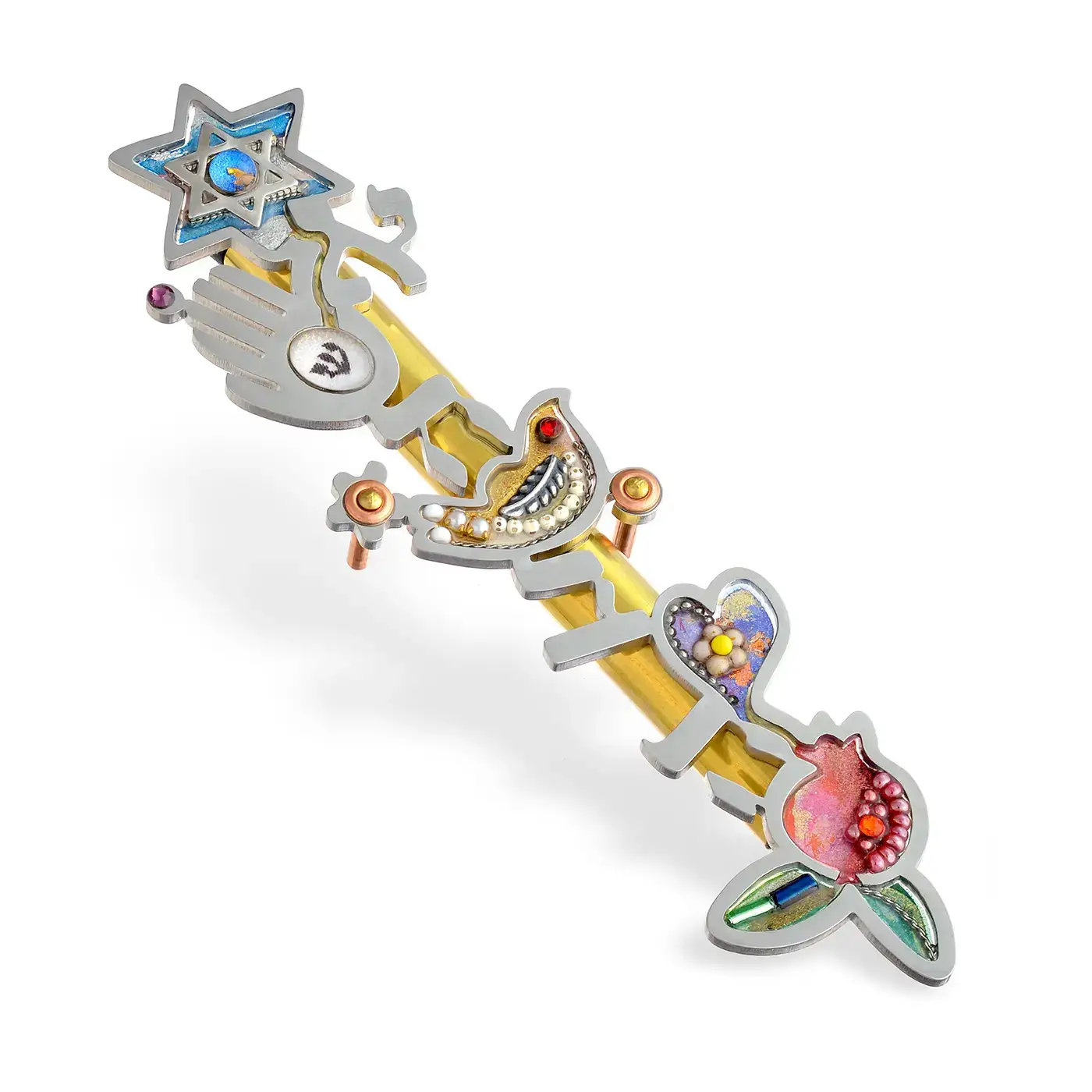 High‐tech ontmoet beeldende kunst in dit oeuvre van kunstenaars Nachshon en Stavit. Ze botsen in New York en worden verliefd. Ze maken gebruik van geavanceerde technologie, doordrenkt met traditionele symbolen en speelse lijnen van eigenzinnigheid, kleur en plezier, naar het eeuwenoude ambacht van Judaica. Seeka werd in 1997 bedacht en gelanceerd op een markt die dorstig was naar nieuwe visuele uitingen van het joodse erfgoed. Sindsdien is Seeka een prominente kracht in de voorhoede van het herlevende gebied van hedendaags joods design. „We beginnen met nauwkeurig gesneden stalen frames. Binnen deze lijsten is het ontwerp met de hand beschilderd met acryl- en metaalverf. Binnenin wordt een verscheidenheid aan materialen geassembleerd, van metalen en glas tot geverfde zaden. Stenen en kristallen zijn ingebed en er wordt een dikke laag acrylhars gegoten om het afgewerkte stuk te omhullen en te beschermen. Eindelijk, na enkele dagen uitharding, wordt het stuk gepolijst, gedraaid, gelijmd en geassembleerd om het voltooide kunstwerk te vormen”