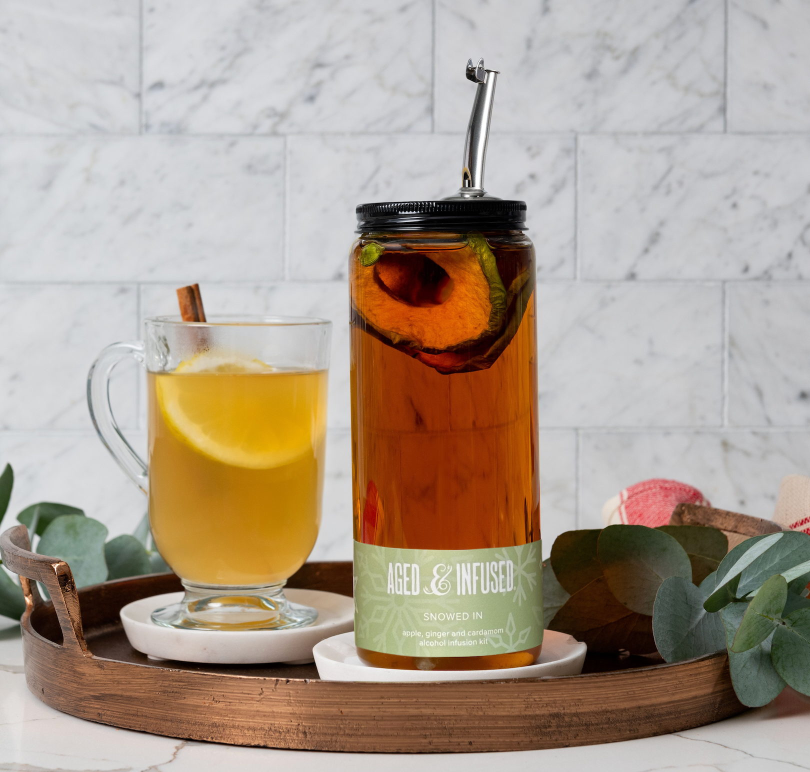 Hoi! Wij zijn Jess en John, het cocktailminnende echtpaar achter Aged & Infused. De afgelopen acht jaar hebben we ons hart en ziel gestoken in het ontwikkelen van een lijn van volledig natuurlijke infusiekits en kleinschalige cocktailbenodigdheden die mensen helpen betere drankjes te maken tijdens het happy hour. Iedereen kan tenslotte een thuisbarman zijn! We zijn zo trots op wat we hier in Chicago hebben opgebouwd en hopen dat je net zoveel van deze producten houdt als wij. Bedankt voor het steunen van ons kleine bedrijf!