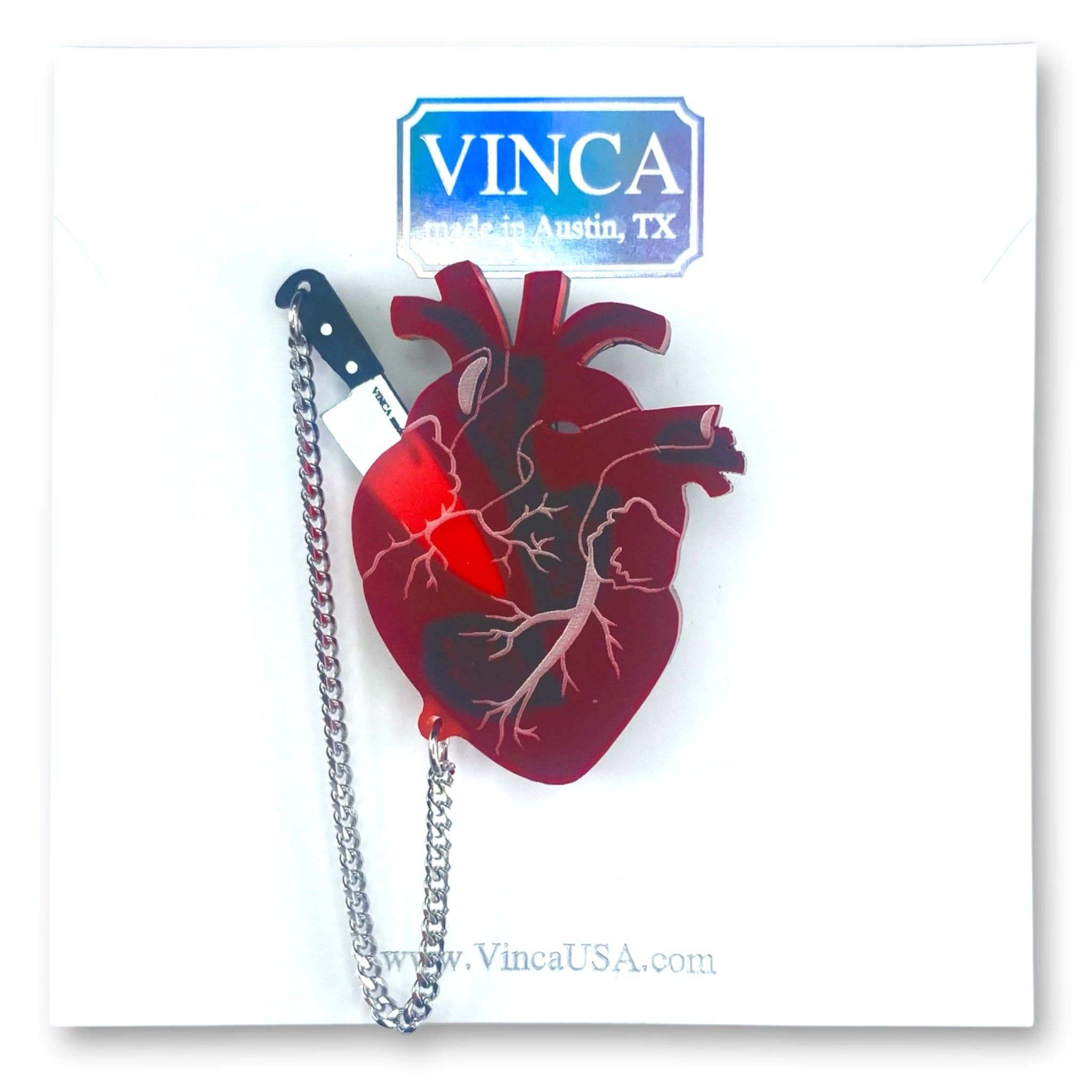 Onze oorbellen worden sinds 2006 allemaal in eigen huis ontworpen en gemaakt. Alle stekers en haken zijn van roestvrij staal en we hebben een paar opties in sterling zilver. Al onze sieraden worden verpakt op mooie kaartjes en zijn klaar voor verkoop. We prijzen onze groothandel met wat speelruimte en suggereren een 2,5x opslag. Onze online aanwezigheid is sterk en we delen graag video's van onze winkels die uitpakken en etaleren, dus tag ons alsjeblieft @VincaUSA #VincaUSA op insta, Vinca_USA op tiktok! Vinca begon in 2006, toen oprichter Amanda Dimova speelde met het maken van speelse sieraden voor degenen die zichzelf niet al te serieus nemen. Van mesoorbellen tot anatomische hartkettingen, dit kleurrijke kleine merk is gezien bij onder anderen Aubrey Plaza en Frances Bean Cobain. Kom ons de volgende keer bezoeken als je in Austin bent! We zitten in een verborgen hoekwerkplaats aan de oostkant. Heb je ooit een paar oorbellen gedragen waardoor je je een badass voelde? Dat horen we de hele tijd van onze klanten! Deze oorbellen zullen alle complimenten naar huis brengen en mensen worden OB-SESSIEF.