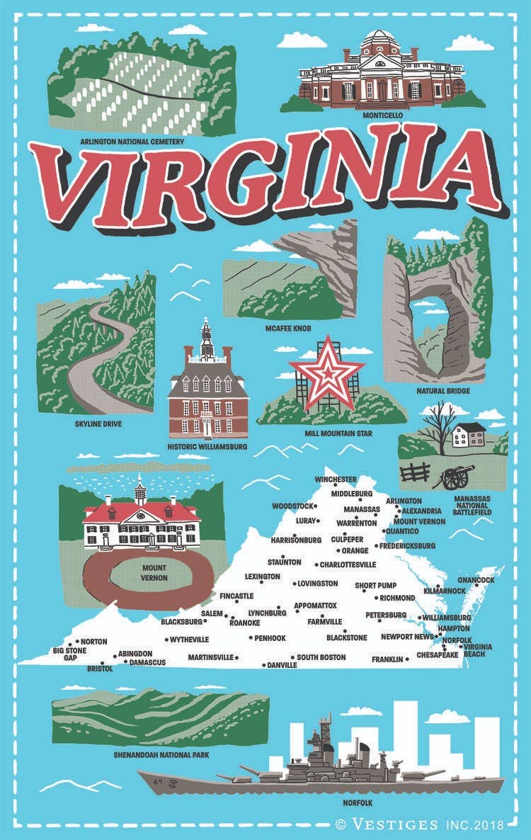 Makers Mary Lazarus en Lucy Pellizzer ontmoetten elkaar dankzij een wederzijdse waardering voor taal, reizen en design. Na 22 jaar plezier en vriendschap begonnen de twee samen weer een avontuur, Vestiges. Geïnspireerd door prachtige souvenirhanddoeken ontdekt tijdens een reis naar Europa, is Vestiges gemaakt om dezelfde soort mooie souvenirhanddoeken terug te brengen naar de VS. Door nieuwe opvallende handdoeken te ontwerpen voor staten, steden en bezienswaardigheden in het hele land, zetten ze de aloude traditie voort van het verzamelen van souvenirhanddoeken die in de jaren dertig in Amerika begon. Vestiges heeft meer dan 140 unieke, handgeïllustreerde ontwerpen geproduceerd in acht collecties, die alle 50 staten, Washington D.C., Steden, Nationale Parken en regio's in het hele land vertegenwoordigen in samenwerking met het Minneapolis College of Art and Design. De handdoeken zijn exclusieve unieke ontwerpen, en echt kleine kunstwerken die betaalbaar, nuttig en een geweldige aanvulling zijn op elke keuken, ongeacht in welke staat het zich bevindt. Overblijfselen betekenen per definitie de laatste kleine sporen of zichtbare tekens die zijn achtergelaten door iets dat ooit bestond, en dat is precies wat Vestiges Inc. streeft te doen. Behoud, verbeter en creëer de aloude en gevierde traditie van de souvenirtheedoek.