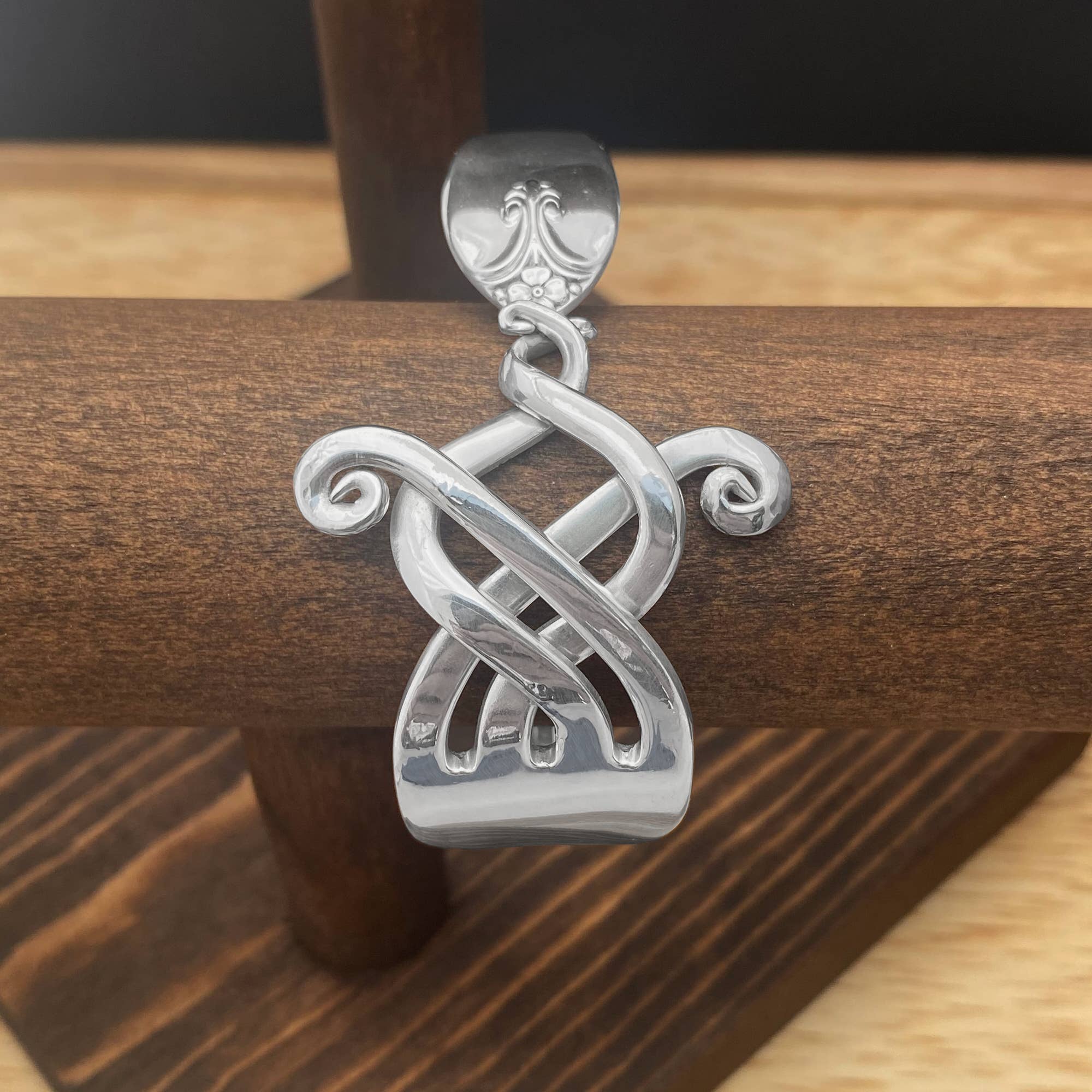 Mijn verhaal als kunstenaar begon in 2010 toen ik in de voetsporen trad van mijn vader. Hij rolde zijn servet uit in een lokaal restaurant in Ann Arbor, MI en ontdekte dat de tanden van zijn vork naar buiten gebogen waren. Dit leidde tot een idee in zijn hoofd om zilverwerk te buigen en het een nieuw leven te geven. Toen ik op de universiteit zat, heb ik me bij hem aangesloten en samen hebben we het proces verfijnd om soepele, consistente bochten te maken in zilverwerk. Nadat hij uit het vak was gegroeid, nam ik het over en ging ik door met dezelfde geest van voortdurende verbetering van ontwerp en gereedschap. Alles wat je vandaag in mijn winkel ziet, komt voort uit mijn filosofie van constante innovatie. Alle gereedschappen die ik gebruik om zilverwerk te buigen, worden in eigen huis ontwikkeld. Met deze tools kan ik soepele, complexe bochten maken met ongeëvenaarde, geavanceerde ontwerpen. Het maken van sieraden van gerecyclede media heeft bij mij een passie aangewakkerd voor het behoud van ons milieu.