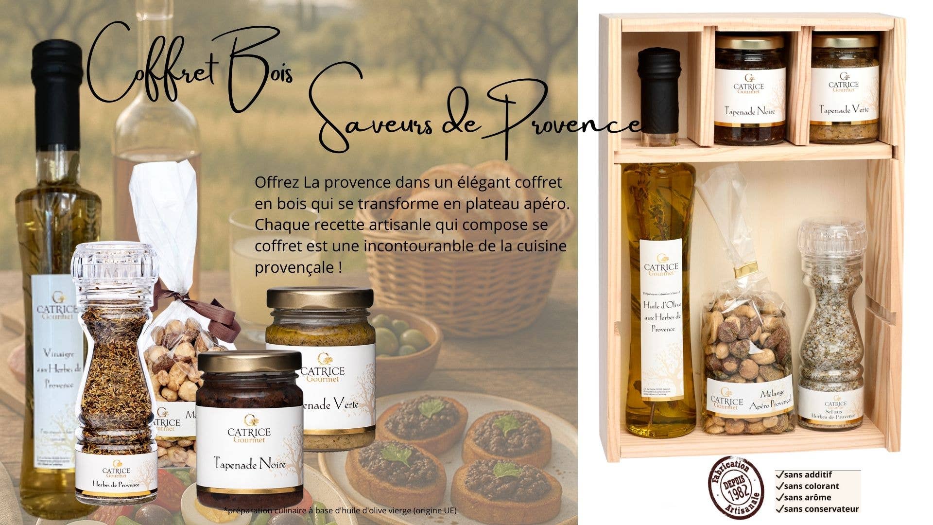 Ons ambachtelijk en familiebedrijf produceert terrines, tapenades, sauzen en specialiteiten voor het aperitief. We creëren ook onze eigen mengsels van zouten, kruiden en specerijen. Onze keuken heeft als diepgaande ethiek het respect voor smaak en het gebruik van geselecteerde ingrediënten. Als ambassadeur van het grote zuiden en authentieke smaken, blijft de Provençaalse gastronomie voortbestaan en evolueren onder invloed van verschillende invloeden. Een smakelijke reis tussen de garrigue-plateaus en de mediterrane kusten. Kom met ons mee op dit culinaire avontuur! Smaakvol de uwe!