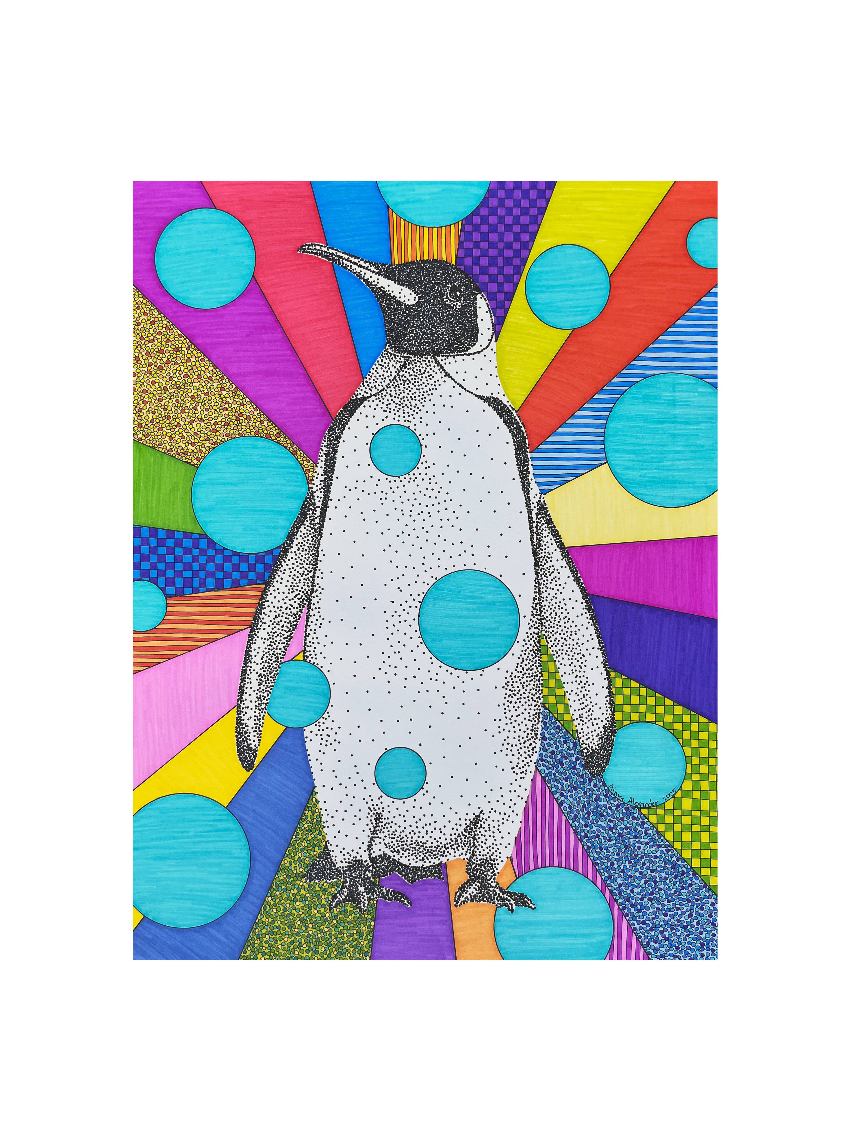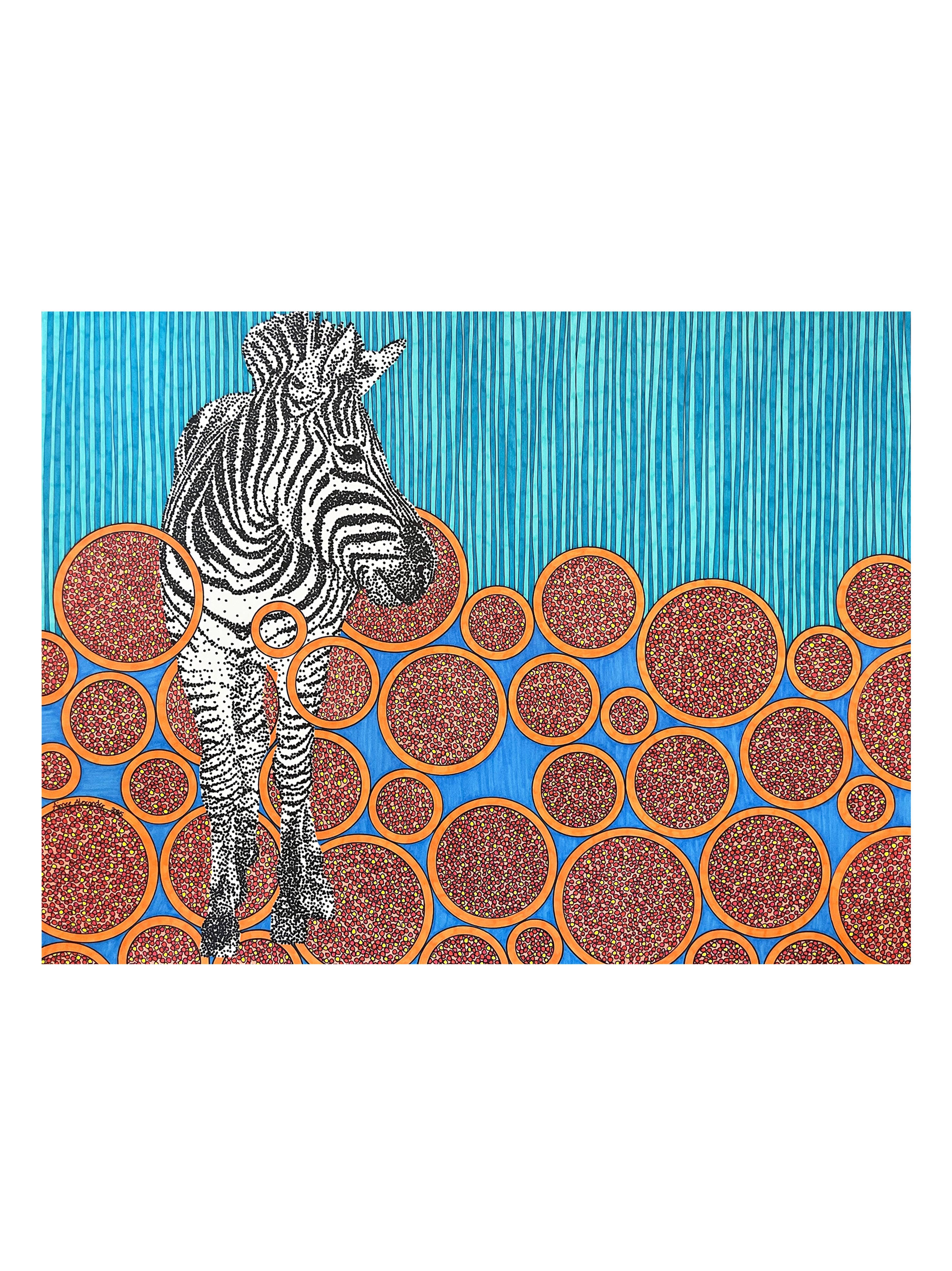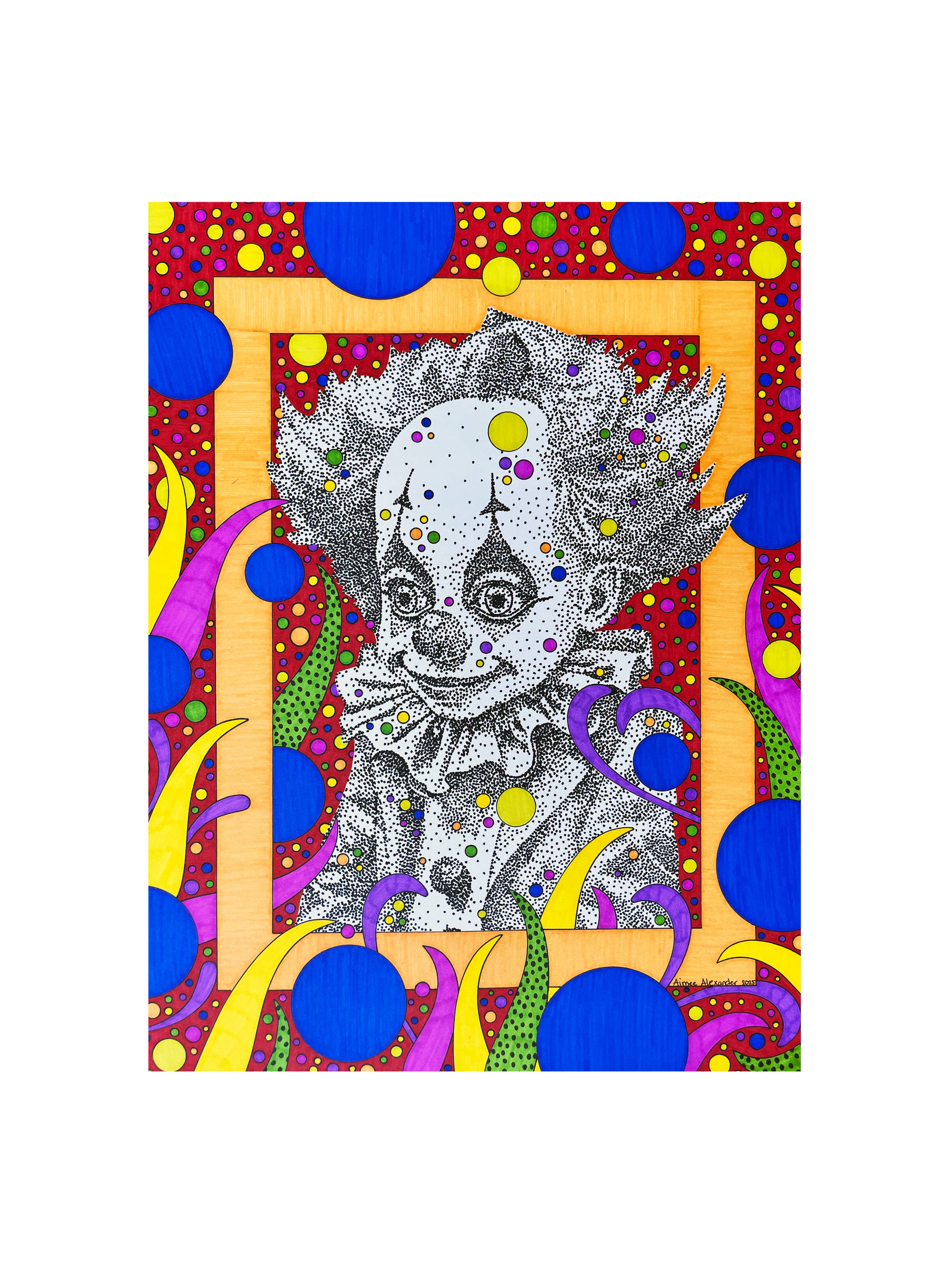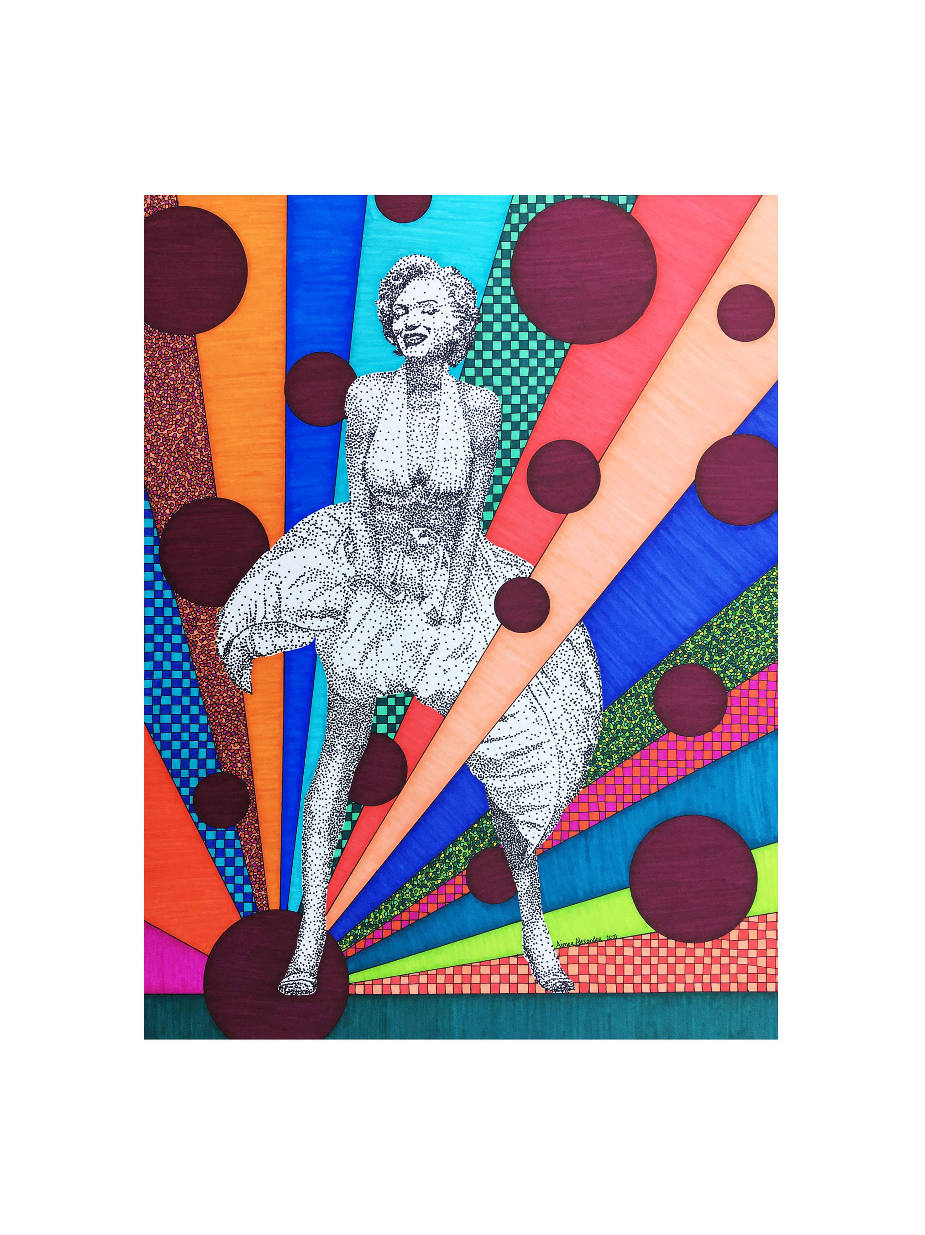 Op 3-jarige leeftijd traceerde Aimee het patroon van het shirt van haar grootmoeder met haar kleine vinger. Op 12-jarige leeftijd ontdekte ze de magische wereld van kunst en design tijdens een reis naar San Francisco om een vriendin te zien afstuderen aan de ontwerpschool. Dit is toen ze besloot dat ze naar de San Francisco Bay Area zou verhuizen en kunstenaar zou worden toen ze opgroeide. Na het afstuderen van Sacramento State met een bachelordiploma in Studio Art pakte ze haar tassen in en verhuisde ze naar de baai. Alle ontwerpen van Aimee zijn gemaakt met een liniaal, een cirkelsjabloon, een liniaal en een waanzinnig aantal stippen! Elk stuk is een explosie van kleur, geluk en verwondering.