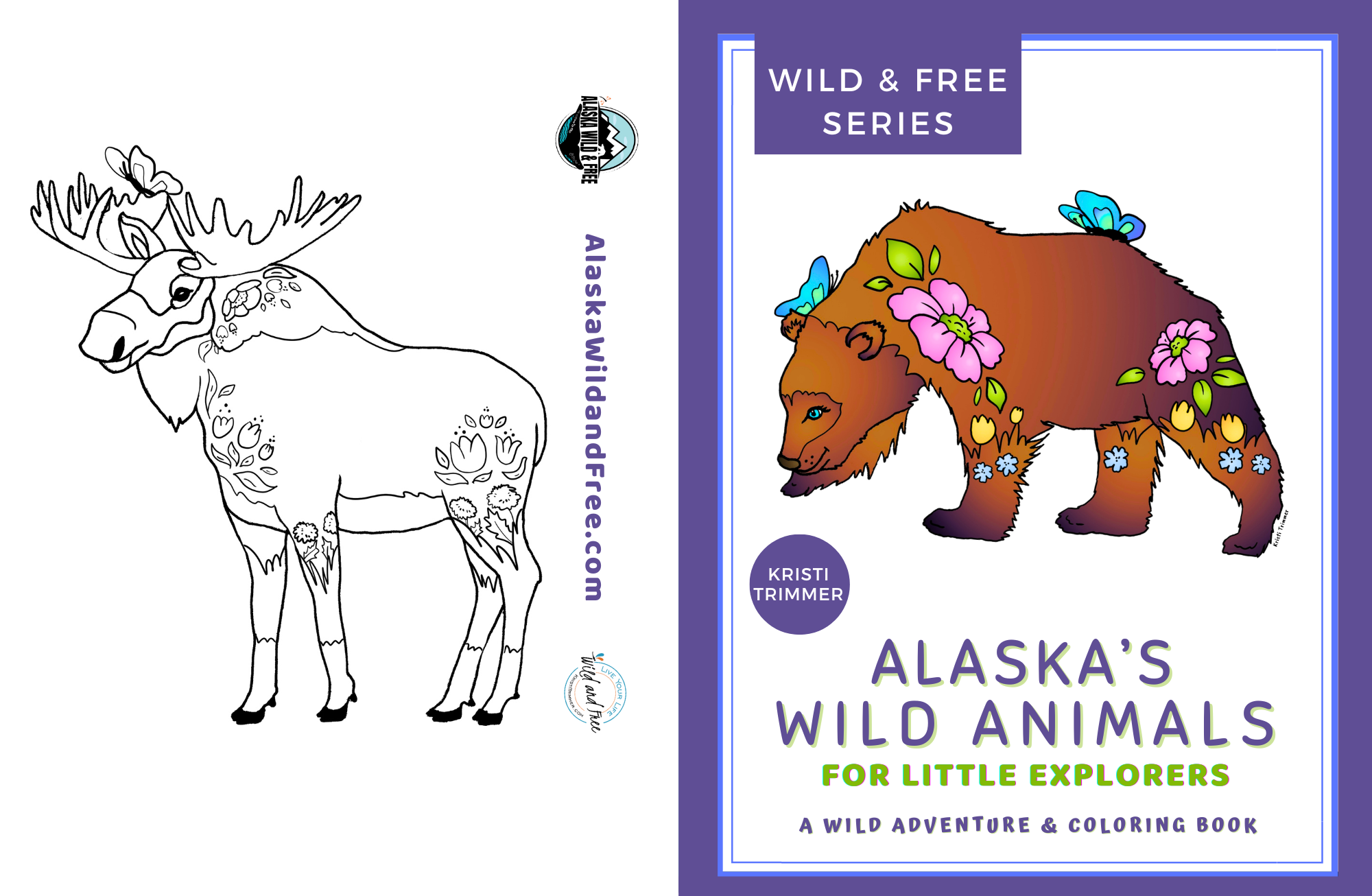 Kristi Trimmer is een professionele schrijver en kunstenaar gevestigd in Anchorage, Alaska. Terwijl ze 4+ jaar nomadische reisschrijver was, maakte ze duizenden foto's van dieren in het wild en landschappen. Ze nam die foto's en maakte er zwart-witillustraties van om haar kleurboeken te maken. Vervolgens kleurde ze deze illustraties in om haar ontwerpen te maken. Alaska Wild and Free is een productgebaseerd bedrijf met op Alaska geïnspireerde stickers +magneten, kleurboeken+printables, email pinnen +knoppen, notitiekaarten +ansichtkaarten, tumblers+HydroFlasks, plus een breed scala aan kleding. Alaska Wild & Free is lid van ZAG. Deze lijn is perfect voor dierentuinen, aquaria, nationale +staatsparken, speciaalzaken, campings, toeristische bestemmingen, bloemisten en cadeauwinkels. Naamdruppels beschikbaar.
