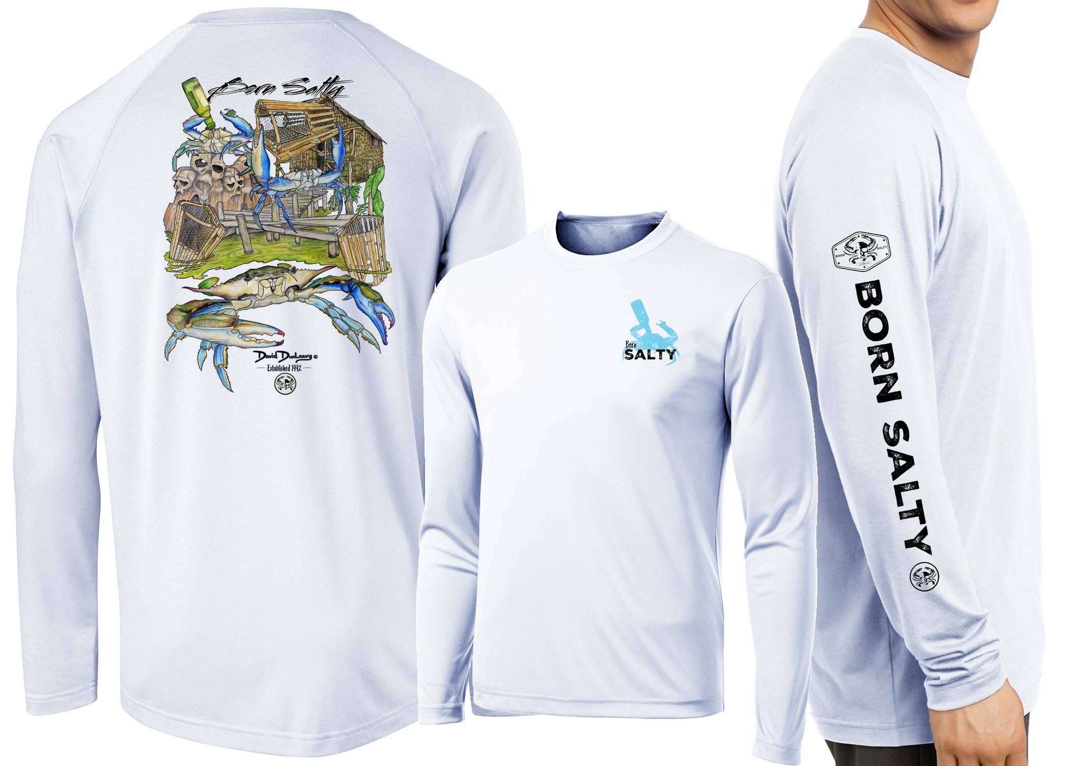 Het verhaal van David begint aan de zuidkust van New Jersey, waar hij als jonge jongen samen met zijn ouders vele uren doorbracht met varen en vissen met zijn familie. De eerste vis die hij ving was een zomervlokvis terwijl hij viste onder de Cape May-brug en die ervaring veranderde deze kleine jongen voor altijd. Opgroeiend in een kustomgeving wist hij dat zijn leven gericht zou zijn op de oceaan en alle natuurlijke wonderen die onze waterwegen te bieden hebben. Vandaag de dag is de David Dunleavy die we allemaal kennen de kunstenaar die dynamische T-shirtontwerpen maakt, Born Salty, Dive Life & Dunleavy Deco Designs voor kleding en SeaLife-muurschilderingen schildert die door miljoenen mensen wereldwijd worden gezien. Zijn kunst- en kledinglijn wordt gedistribueerd aan honderdduizenden vissers, kapiteins, bootliefhebbers, kajakkers, duikers, snorkelaars, duikmeesters, speervissers en oceaanliefhebbers. Dunleavy's passie vanaf jonge leeftijd is altijd de oceaan geweest.