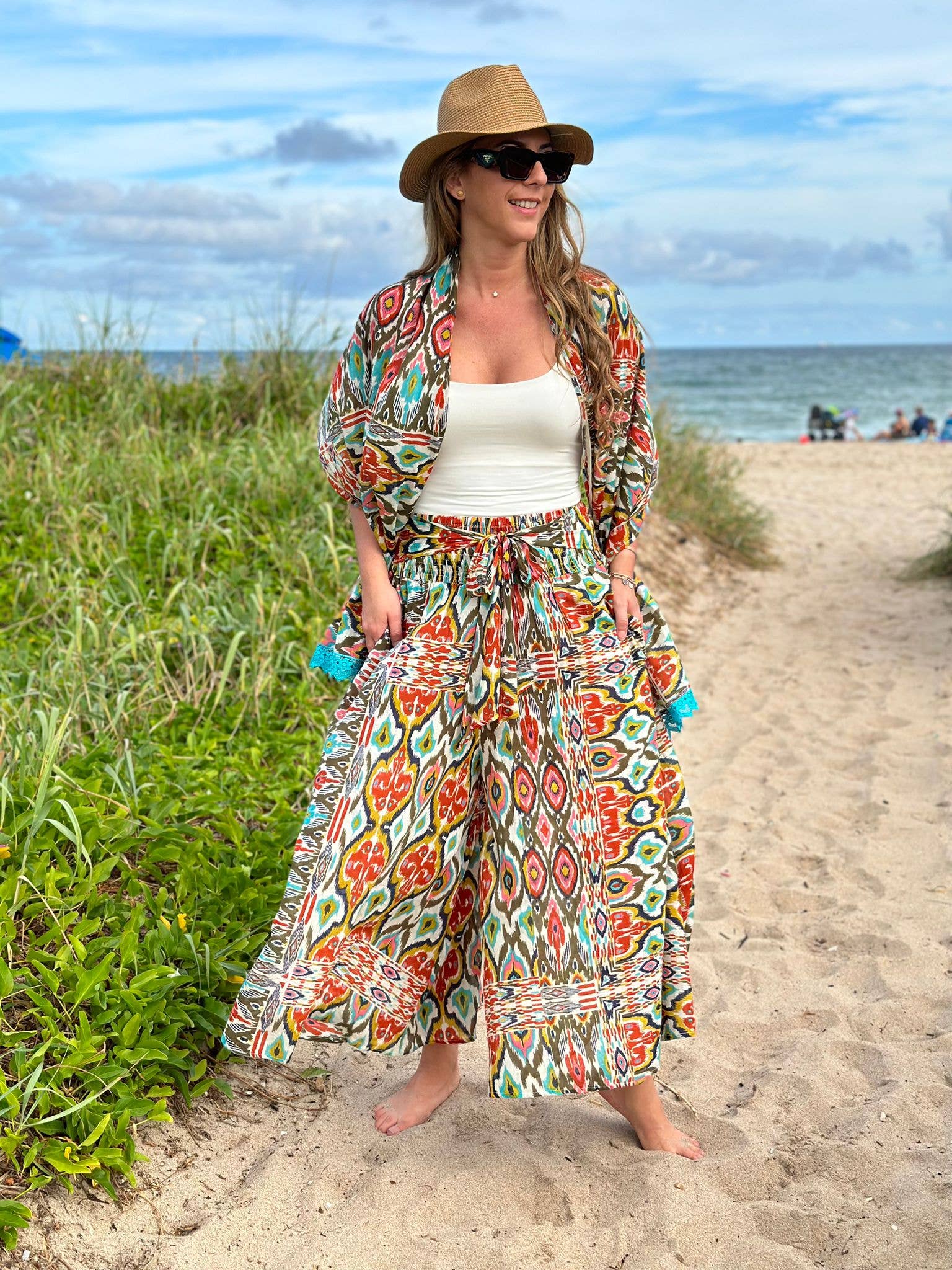 Wij zijn een vertrouwde groothandel in luxe resort- en reiskleding voor dames, ontworpen voor elk lichaamsvorm met lichtgewicht stoffen die luxe en bruikbaarheid combineren. Geschikt om comfortabel de wereld rond te reizen en er stijlvol en chic uit te zien, ongeacht het seizoen! Ons merk wordt verkocht in meer dan 150 speciaalzaken, boetieks, privéclubs, resorts, golfwinkels en spa's in het hele land en in het Caribisch gebied. We richten ons op eenvoud en elegantie, waardoor onze kledingstukken kant-en-klare kledingstukken zijn die bij elke gelegenheid kunnen worden gedragen. Als luxemerk geloven we in twee dingen: 1. Luxe is geen prijs; het is een gevoel van ultiem comfort en persoonlijke ervaring. 2. Luxe zit in elk detail. Het vakmanschap van al onze producten is met de hand gesneden, het afdrukken van houtblokken duurt bijna 2 uur voor 1 meter stof die met de hand is gestempeld, onze digitale prints zijn exclusieve ontwerpen en sommige stukken bevatten kristallen waardoor de outfit een kunstwerk is. De meeste van onze kleding is gemaakt van materialen die tot ver in het volgende decennium meegaan. De meeste maten zijn one-size, maar we werken ook met de standaardmaten S/M en L/XL. Er zijn grote maten beschikbaar.