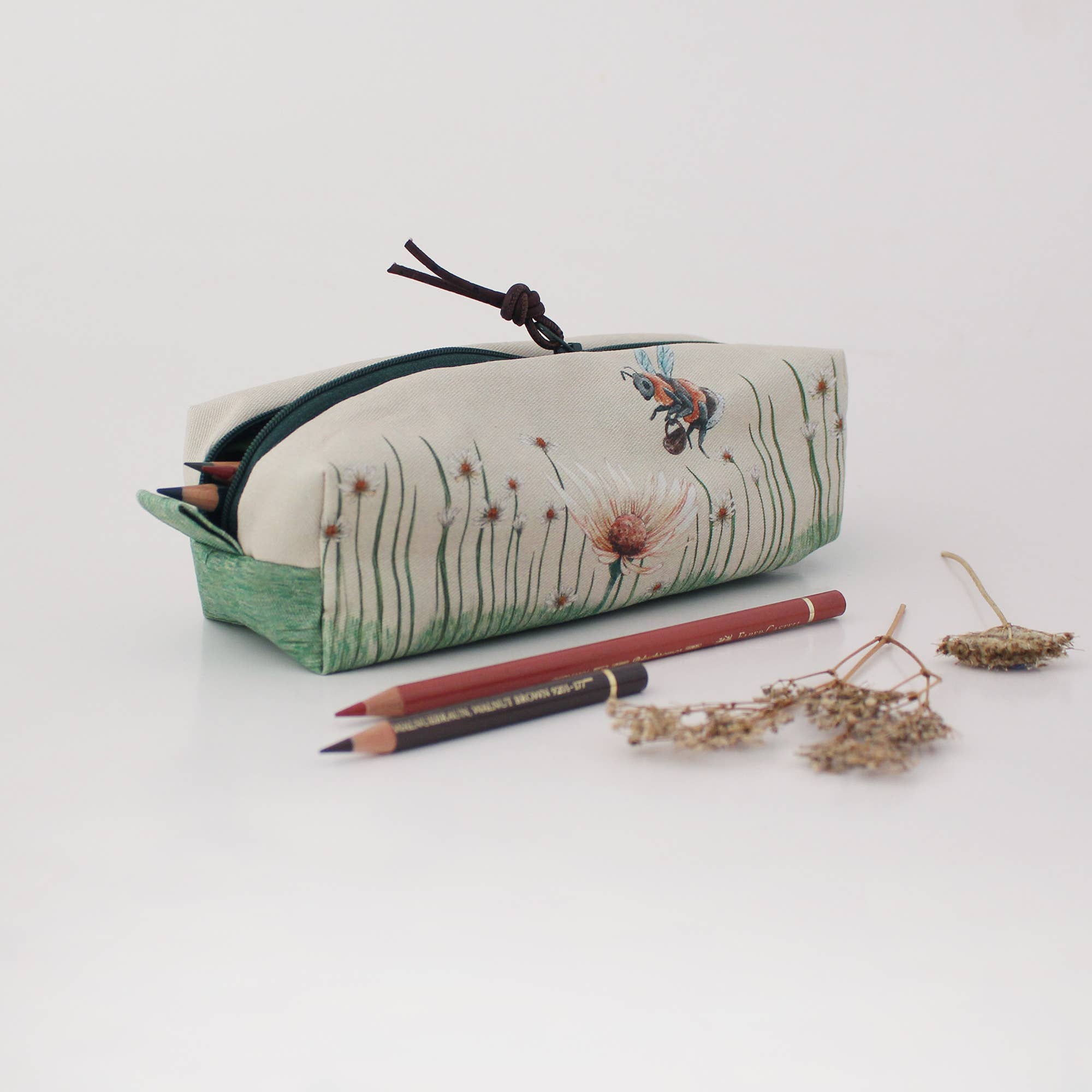 Mijn inspiratiebron komt uit de natuur en meer bepaald uit de fauna en flora. Ik gebruik mijn illustratie als uitgangspunt en mijn eigen ontwerpen worden op stof gedrukt. Hier worden handige opbergzakken van gemaakt en zijn erg populair bij breiers, haaksters en knutselaars om hun projecten in op te bergen. Alle tassen zijn gemaakt van 100% biologisch katoen, bedrukt met milieuvriendelijke inkten op waterbasis en afgewerkt met veganistische kurkkoorden. Duurzaamheid van zowel de materialen als het productieproces is een belangrijk aspect van mijn bedrijf.