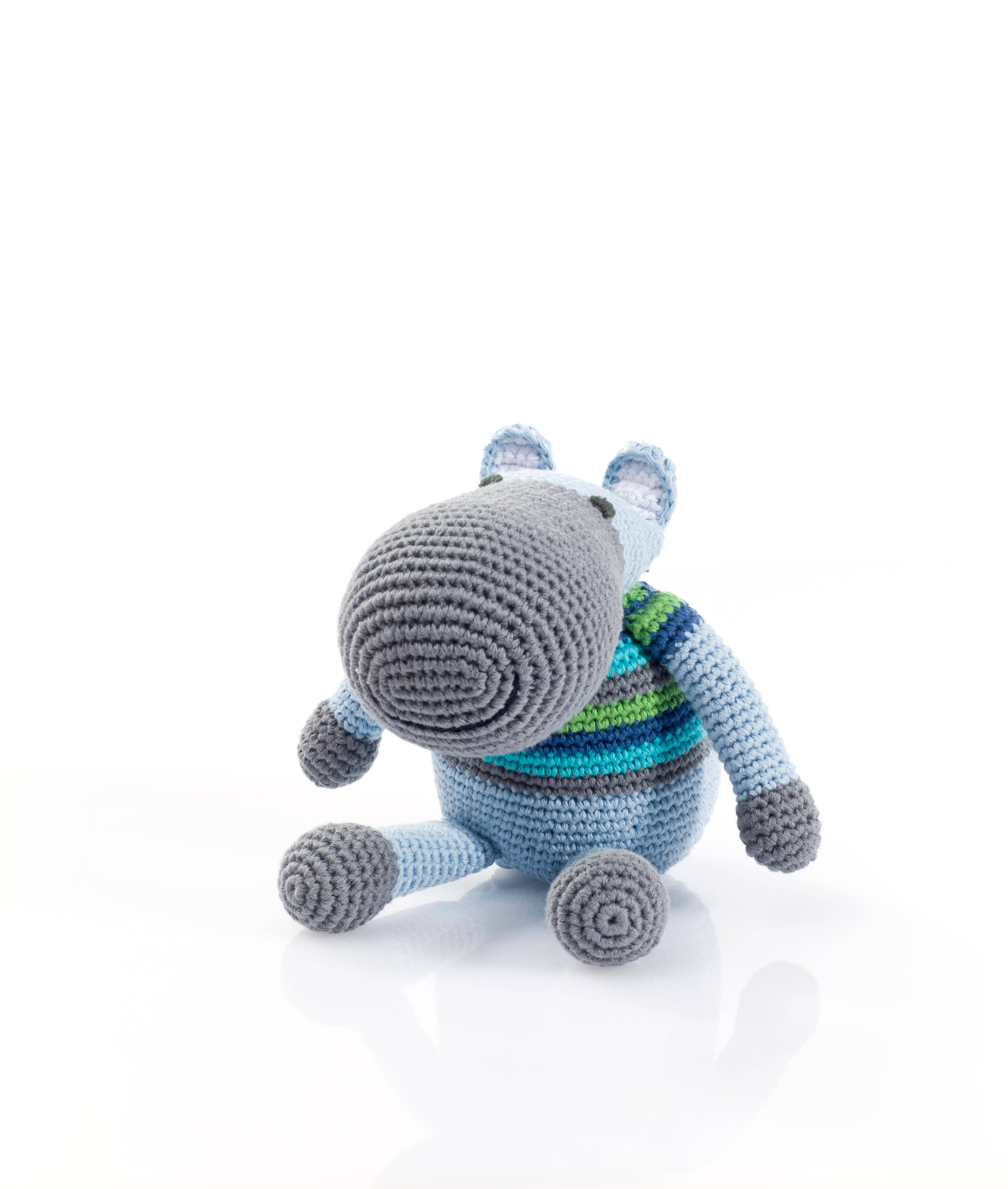 Vanaf nul...: Achter elk Pebble Toy zit een sterke vrouw - achter Pebble staat de non-profitorganisatie Hathay Bunano. Toen haar oprichters in 2005 begonnen, hadden ze 500 US $ op zak en één doel: het creëren van een duurzame, aanpasbare en eerlijke werkomgeving voor mensen op het platteland van Bangladesh. ... tot 206: Vandaag kijkt Pebble trots naar ongeveer 206 dorpsproducties waarin meer dan 12.000 vrouwen en mensen met een handicap kinderspeelgoed en babyaccessoires breien en haken. Naast het trainen van hun werknemers in de kunst van een ambacht, zorgde Hathay Bunano voor de opvoeding van hun werknemers, kinderen die ze naar de baan kunnen brengen. eerlijk en flexibel: een eerlijke betaling en flexibele werktijden zijn een deuropener uit armoede. Met het salaris kunnen de vrouwen hun gezin onderhouden en hun levensomstandigheden permanent verbeteren. De brede verspreiding van de dorpen over het hele land bespaart hen lange reizen en voorkomt dat de vrouwen naar de steden migreren en voorkomt daarom dat gezinnen uit elkaar worden gescheurd. Zo tovert Pebble een glimlach op kleine en grote gezichten, in Bangladesh en in kinderkamers wereldwijd. Elk stuk is uniek: met de hand gemaakt en door het hoofd gemaakt - eenvoudig - elk stuk is 1 van een kind.