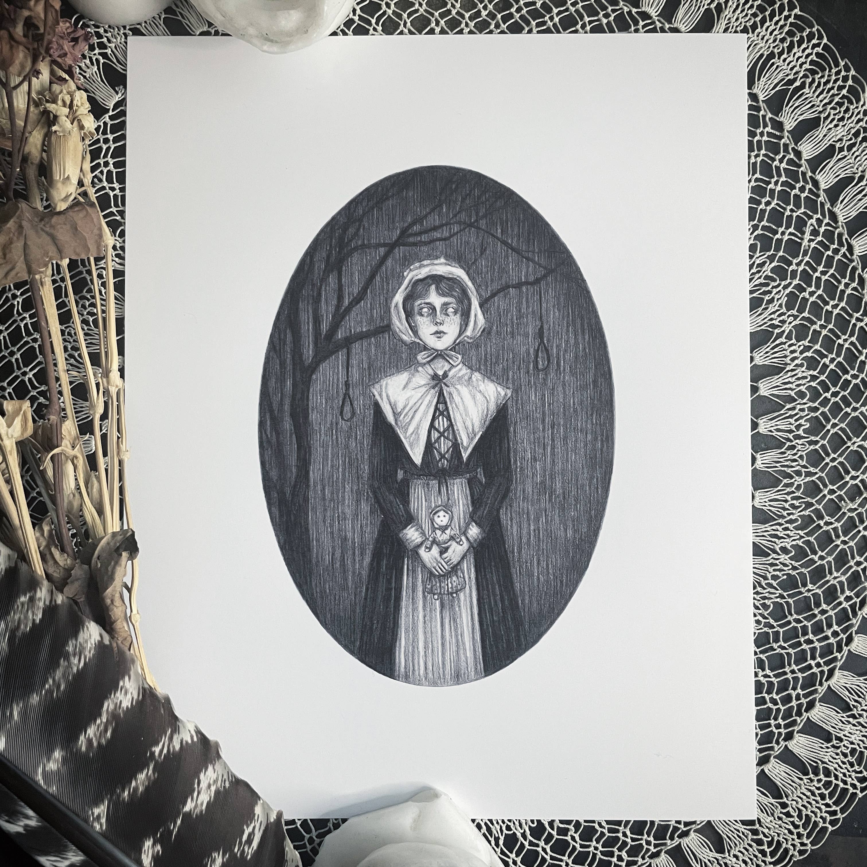 Caitlin McCarthy is een kunstenaar en illustrator die momenteel in Noord-Californië woont. Sinds jonge leeftijd is Caitlin geïnteresseerd in magie en het gebruik van kunst als een hulpmiddel om het te verkennen. Haar werk toont vaak visioenen van donkere, dromerige vrouwen in de vorm van zieners, godinnen, mystici en heksen. Door haar fascinatie voor Victoriaanse gevoeligheden en het occulte te kanaliseren, roepen haar tekeningen gevoelens van melancholie op en creëren ze een griezelige, buitenaardse sfeer. Caitlin's favoriete medium is grafiet op papier. Ze is de maker van The Dark Goddesses Oracle Deck. Alle kunstdrukken van Caitlin worden intern gemaakt op kwalitatief hoogwaardig archief mat papier en elke bestelling wordt met liefde en zorg samengesteld en verzonden.