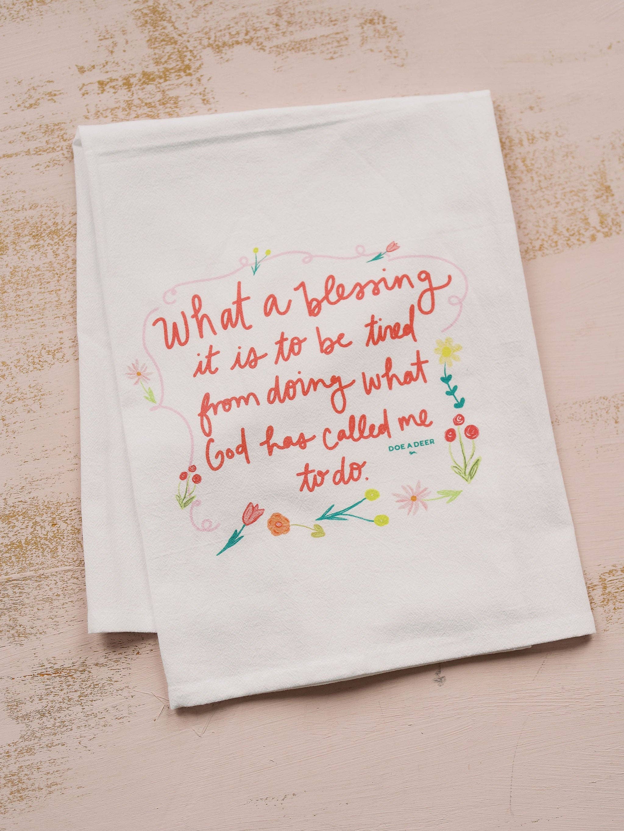 Eigenaar, Regan, maakt met de hand getrokken meelzakhanddoeken en andere huis- en keukenartikelen. Alle productontwerpen, gevestigd in een klein stadje in het centrum van Iowa, zijn zorgvuldig uitgevoerd met felle kleuren, een vleugje humor en een vleugje vintage flair. Doe A Deer heeft een passie voor het creëren van unieke en betaalbare woonaccessoires die een glimlach op je gezicht toveren. Onze producten worden verkocht in meer dan 500 boetieks over de hele wereld. Doe A Deer was te zien in Midwest Living, Flea Market Style & The Kitchn. Je kunt altijd nieuwe producten verwachten die alleen in het seizoen verschijnen en op tijd bij je aankomen voor je seizoensverversing! We zijn gepassioneerd door snelle levering en goede klantenservice.