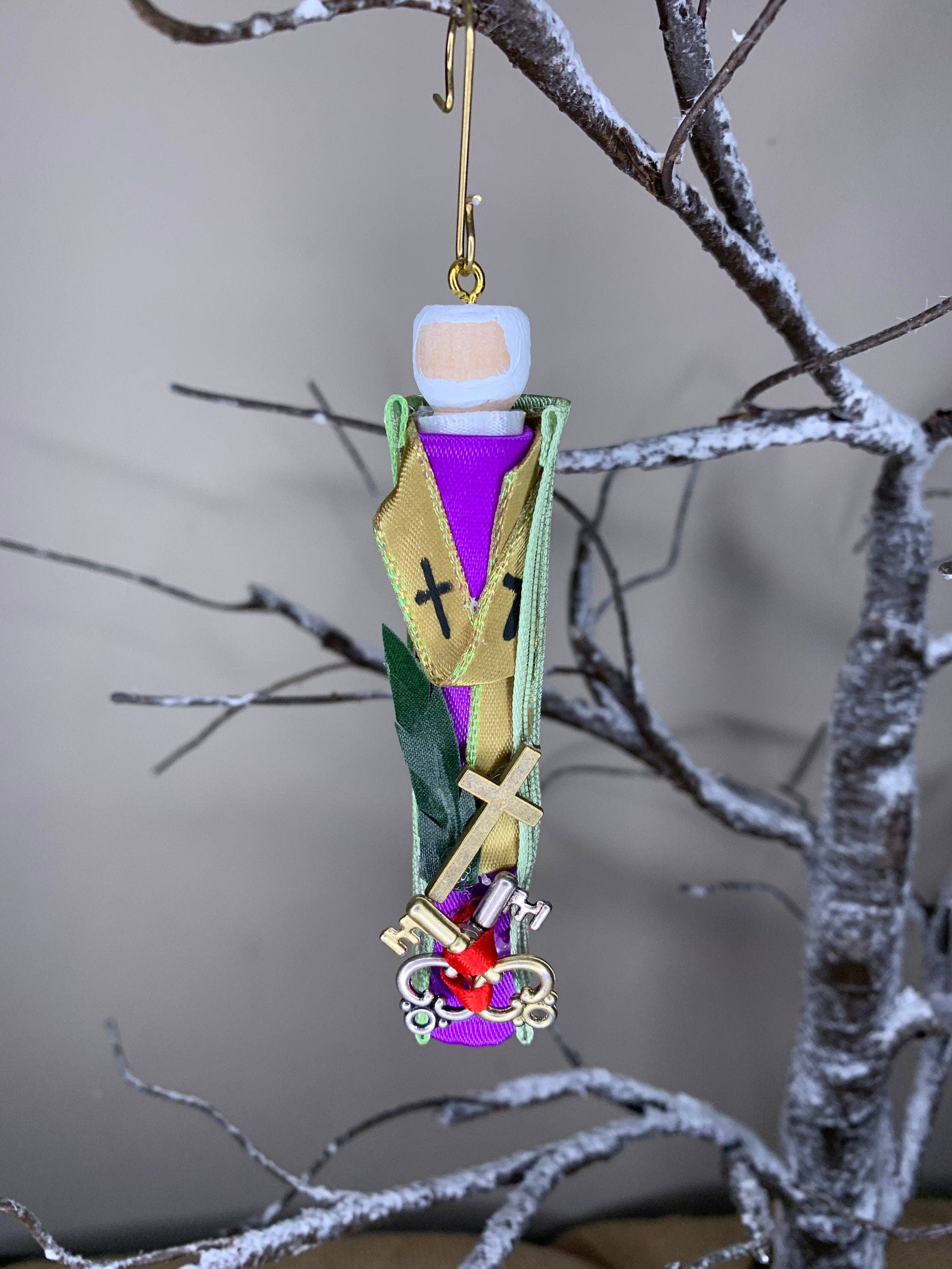 Onze heilige familie maakt prachtig vervaardigde houten poppenornamenten met afbeeldingen van verschillende heiligen en bijbelse figuren. Elk stuk is zorgvuldig met de hand beschilderd met ingewikkelde details, waardoor ze perfect zijn voor het versieren van kerstbomen of als doordacht cadeau voor dierbaren. Omarm de geest van geloof en traditie met onze unieke collectie religieuze ornamenten, ontworpen om de ziel te inspireren en te verheffen.