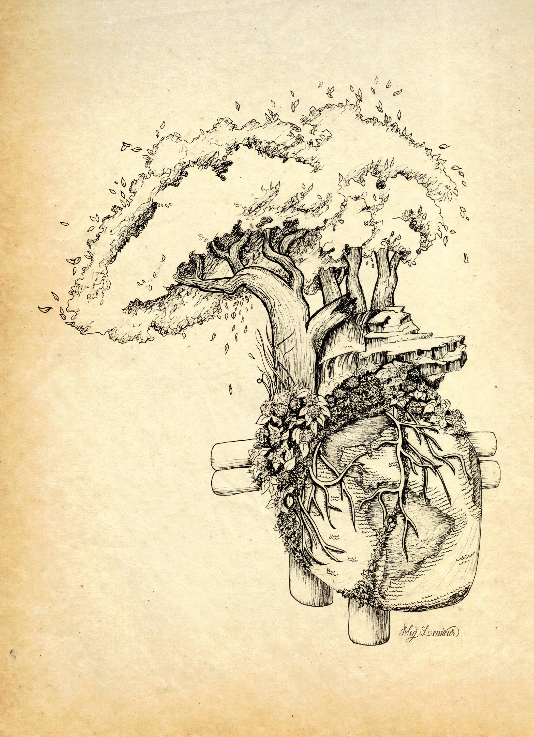 Meg Lemieur Art is een reeks prachtig gedetailleerde illustraties die de diversiteit en onderlinge verbondenheid van alle levende wezens bejubelen. Meg's illustraties bevestigen zachte humor en motiverende boodschappen door middel van haar grillige composities van diverse flora en fauna. De zorg en het detail van elk stuk, getekend over vele uren, dagen en soms maanden, straalt een gezonde, sierlijke en inspirerende geest uit.