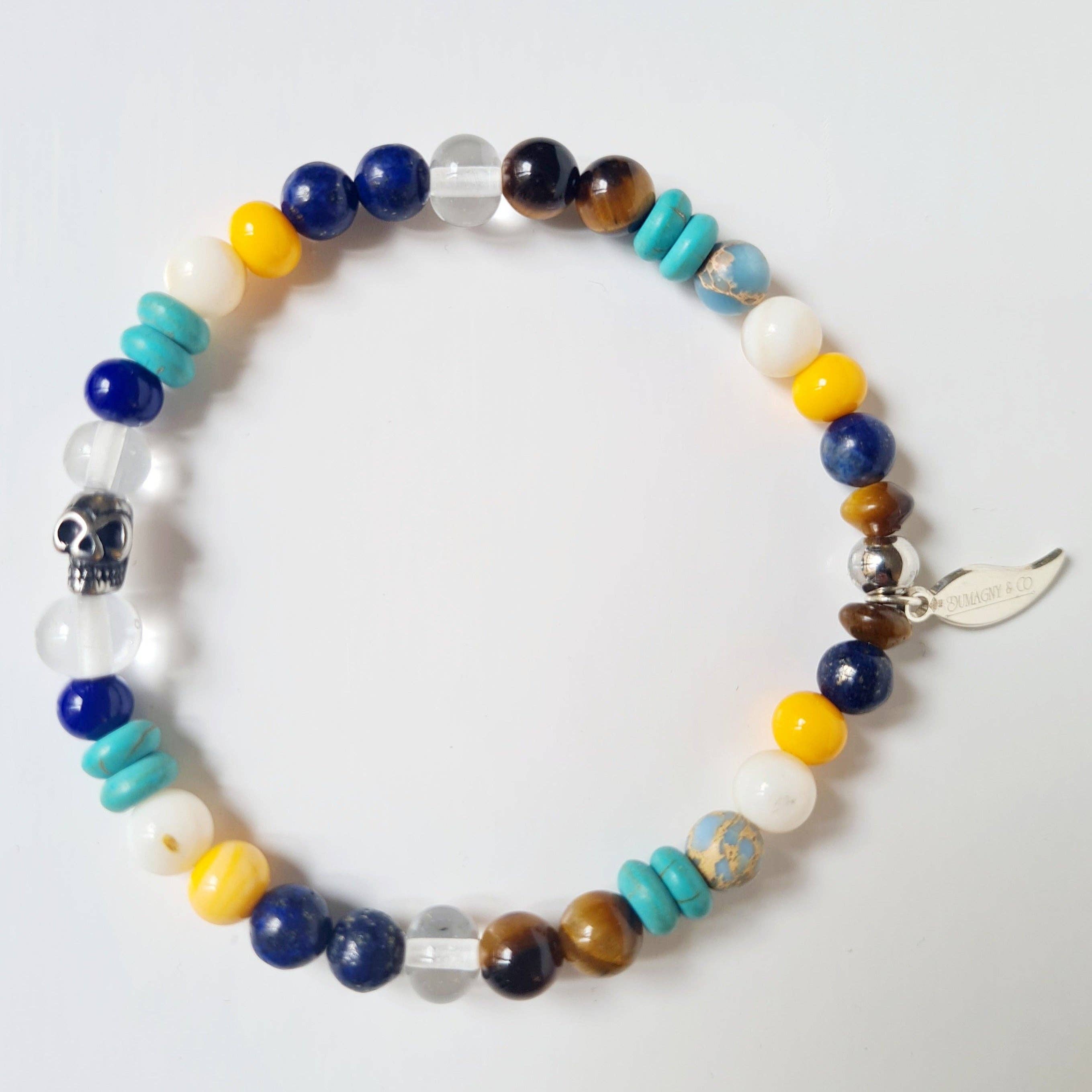 Glazen kralenarmbanden van champagneflessen Dumagny & Co is een sieradenmerk dat in 2021 in Cannes is gelanceerd. Een originele en symbolische grondstof, champagneflessen, eenmaal getransformeerd, zijn het eerste ingrediënt in deze sprankelende armbanden. Dumagny benadrukt glasbewerking en assemblages van natuurlijke materialen door hoogwaardige en unieke armbanden voor mannen, vrouwen en kinderen aan te bieden. Glas heeft zich natuurlijk bewezen als het vlaggenschipmateriaal van creaties. Met oneindige mogelijkheden van oorsprong en variaties is het hun eerste troef, hun handelsmerk. Dumagny & Co vertrouwt op de knowhow van gerenommeerde Franse ambachtslieden, gepassioneerd door hun ambacht, die elke glaskraal met de hand vormen voor een stralend en opmerkelijk resultaat, of het nu gaat om Murano-glas met meerdere tinten of gerecycled glas. Elke parel die in de werkplaats wordt gemaakt, vertelt een verhaal. Een zachte, ronde vorm, een paar bubbels gevangen in het glas maken het juweel authentiek en uitzonderlijk. Naast glas, fijne stenen (jade, amethist, kwarts, toermalijn, aquamarijn, enz.), ebbenhout, parelmoer of lavasteen wordt een breed scala aan natuurlijke materialen gebruikt. Deze kleurrijke armbanden zullen zeker het „must have” accessoire worden voor terug naar school.