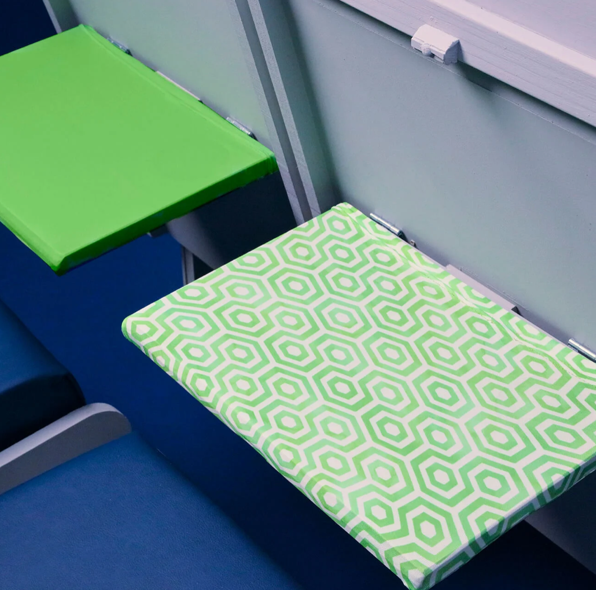 Go-Be is meer dan alleen een herbruikbare antimicrobiële hoes die op de bakjes van vliegtuigen, treinen en bussen past om je te beschermen tegen al die ongewenste ziektekiemen. Go-Be verenigt wellness, milieubewustzijn en stijl om van elke reis een eersteklas ervaring te maken! Onze prachtige hoezen zijn wasbaar en herbruikbaar en voorzien van een niet-giftige, hypoallergene antimicrobiële technologie, zodat ze niet alleen veilig zijn voor jou, maar ook voor de planeet! Go-Be trayhoezen passen universeel over Coach-trays, waardoor al die schadelijke, niet-biologisch afbreekbare desinfectiedoekjes die onze stortplaatsen verstoppen, niet meer nodig zijn. Kies uit meer dan 20 coole patronen die kunstzinnig zijn ontworpen voor iedereen, van baby's tot zakenmensen. Onze hoezen zijn gemaakt van BPA-vrij plastic afval en worden per paar geleverd en kunnen worden opgeborgen in onze gepatenteerde lichtgewicht hoes die aan elke handbagage kan worden bevestigd. Blijf schoon. Vlieg groen. Milieuvriendelijk. Duurzaam. Gemaakt in de VS. Go-Be helpt de planeet te redden, tafel voor tafel!