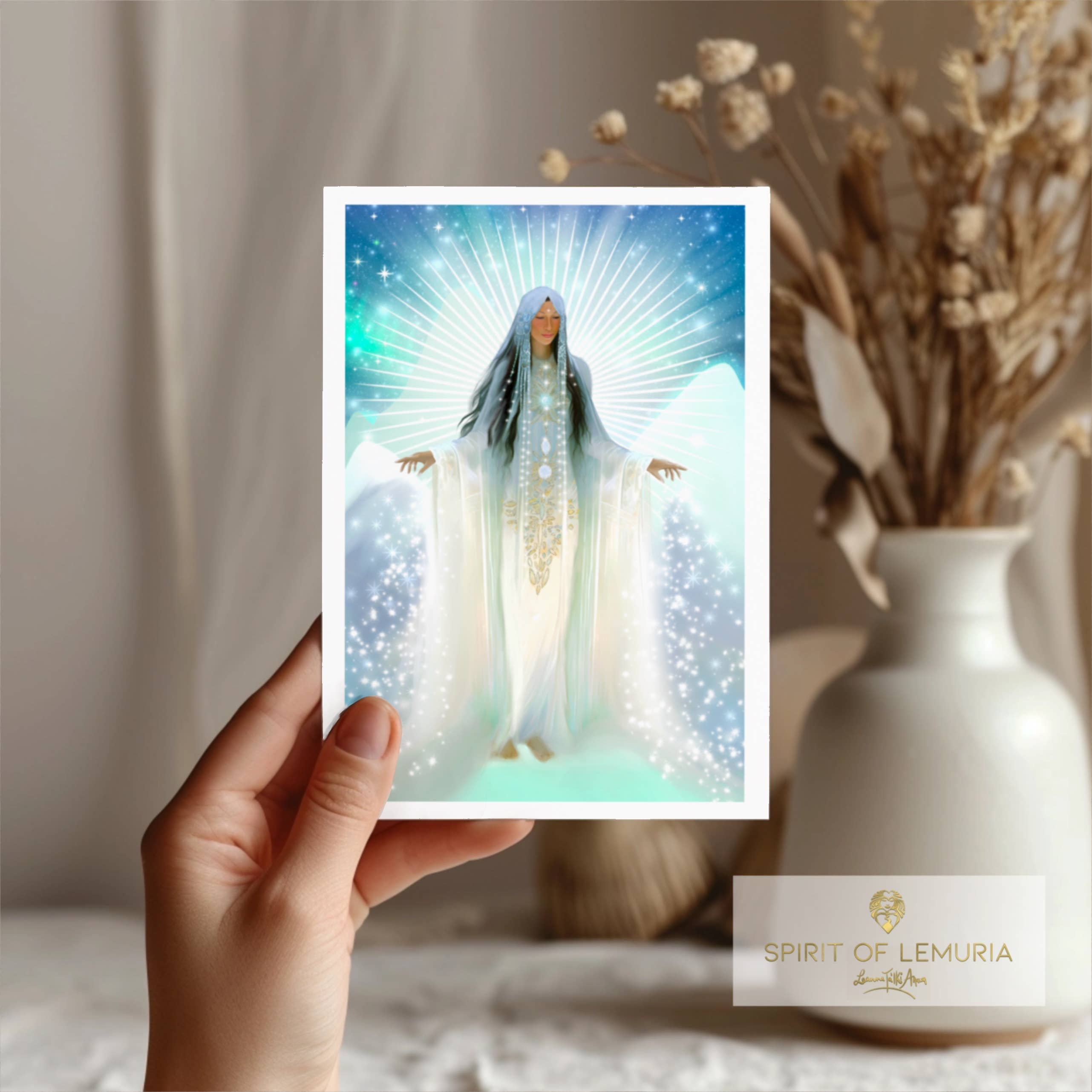 Mijn naam is Leanne en ik ben de oprichter en kunstenaar achter Spirit of Lemuria. Ik ben hiermee begonnen om enkele van mijn grootste passies, spiritualiteit, lemurië en kunst, te combineren. Lemurië is een oude beschaving die ik me herinner. Het is voor mij een soort afkorting: voor veel mooie dingen - een levend sjabloon voor de hemel op aarde - onze pure natuur en de goddelijke blauwdruk in actie - kunnen we het voelen en horen in de zanglijnen van onze Nieuwe Aarde die opkomt - en in onze natuurlijke vermogens om subtiele energieën waar te nemen - het zijn ons Hoger Zelfbewustzijn, onze voorouders en de prachtige lichtfamilie die ons begeleiden. Mijn ontwerpen maken gebruik van rustgevende en kalmerende kleuren - de traditionele kleuren van het Hoger Hart en de hemelse rijken, of ze bevatten opbeurende en activerende kleuren en geometrieën die kosmische sterrenenergieën brengen en het vreugdevolle huwelijk tussen het manifeste Universum en de Goddelijke Bron weerspiegelen. Mijn kunst komt voort uit visioenen die ik krijg tijdens meditatie, yoga en groepshalingskringen. Spirit of Lemuria is gevestigd in het Hartchakra van de planeet Aarde, Glastonbury, VK. Ik zorg ervoor dat de fabrikanten die ik kies allemaal eerlijke lonen betalen en materialen gebruiken die ethisch zijn geproduceerd, en ik kies milieuvriendelijke producten om mijn ontwerpen op aan te brengen, en waar mogelijk oplosmiddelvrije inkt.