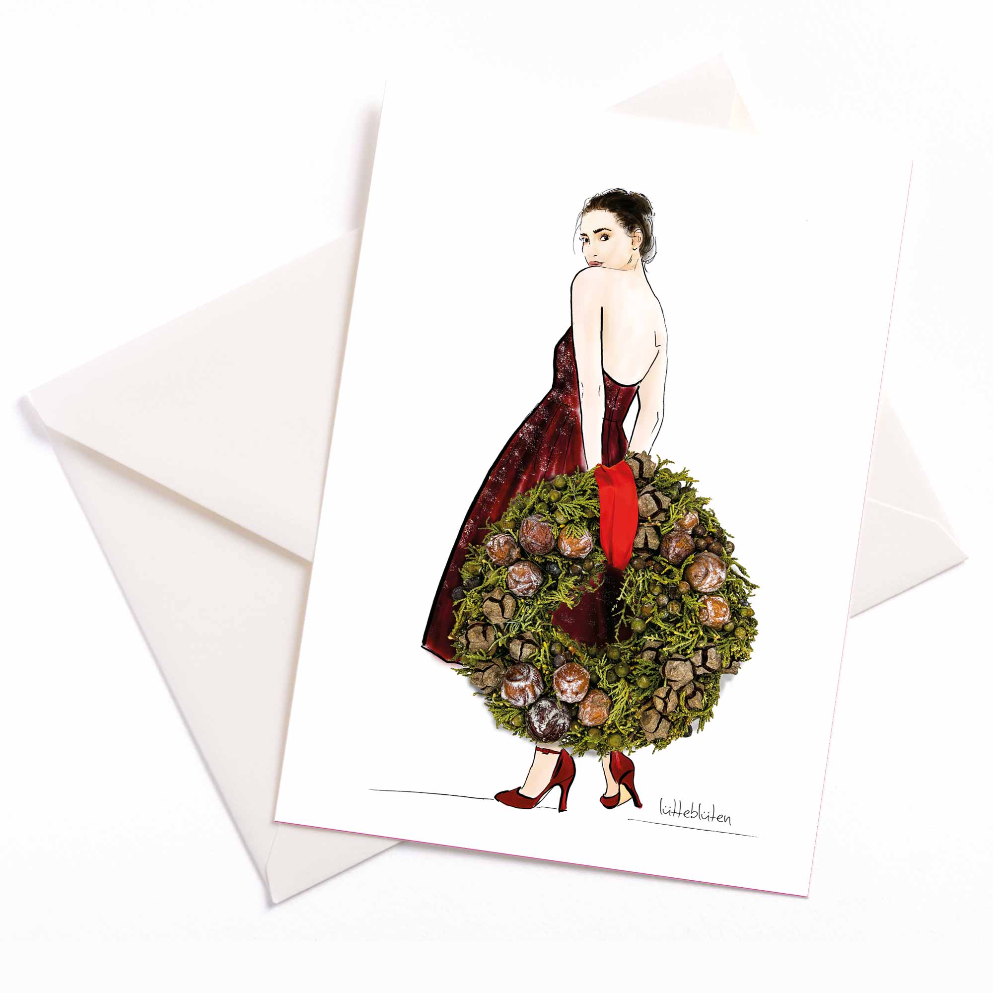 Lütteblüten combineert delicate illustraties met echte materialen om poëtische papierwaren te creëren. In het hart van elk stuk staan met de hand getekende figuren en dieren die "gekleed" zijn met natuurlijke en alledaagse voorwerpen – waaronder bloesems, fruit, sieraden, veren, metaal, chocolade en meer. De motieven vertellen kleine verhalen uit het dagelijks leven – van een bezoek aan de kapper tot een huisrenovatie of een rustig moment van afscheid. Speciale en seizoensgebonden gelegenheden zoals bruiloften, jubilea, Kerstmis, lente of zomer worden op een liefdevolle en onverwachte manier heruitgevonden. Elk arrangement wordt zorgvuldig gefotografeerd en afgedrukt op hoogwaardig papier, wat resulteert in een verrassend 3D-effect dat tastbaar lijkt maar puur visueel is. Alle producten worden duurzaam geproduceerd, zijn plasticvrij en met de hand liefdevol verpakt. Lütteblüten staat voor doordacht design, milieubewuste productie en unieke stukken – of het nu gaat om een lentegroetkaart, een condoleancebericht, een hartelijk jubileumcadeau of een uniek ontwerp voor de bruiloftstafel. Perfect voor winkels die op zoek zijn naar iets echt bijzonders.