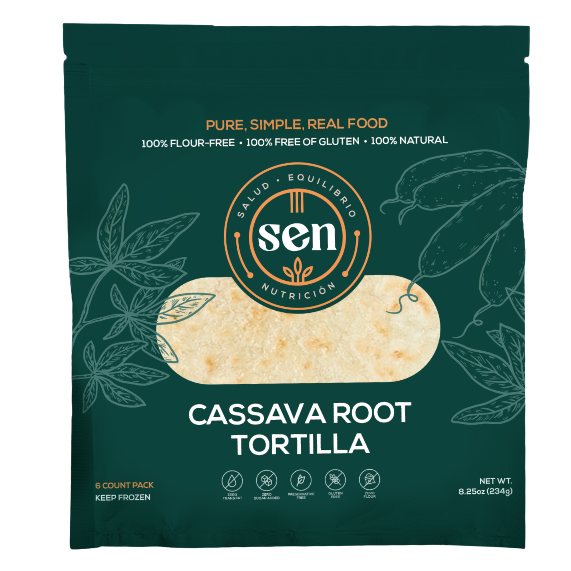 SEN-tortilla's zijn van nature glutenvrij en gemaakt met cassavewortel en echte, volledige ingrediënten—geen vulstoffen, geen stabilisatoren en geen rare dingen. Flexibel, smaakvol en klaar voor alles, onze tortilla's zijn perfect voor taco's, tostada's, wraps en zelfs "pizilla's" (pizza, SEN-stijl). Zeg vaarwel tegen smakeloze, breekbare tortilla's en hallo tegen tortilla's die net zo hard werken als jij. Of je nu glutenvrij bent uit keuze, uit noodzaak, of gewoon beter wilt eten, SEN-tortilla's leveren grote smaak, echte ingrediënten en nul compromissen.