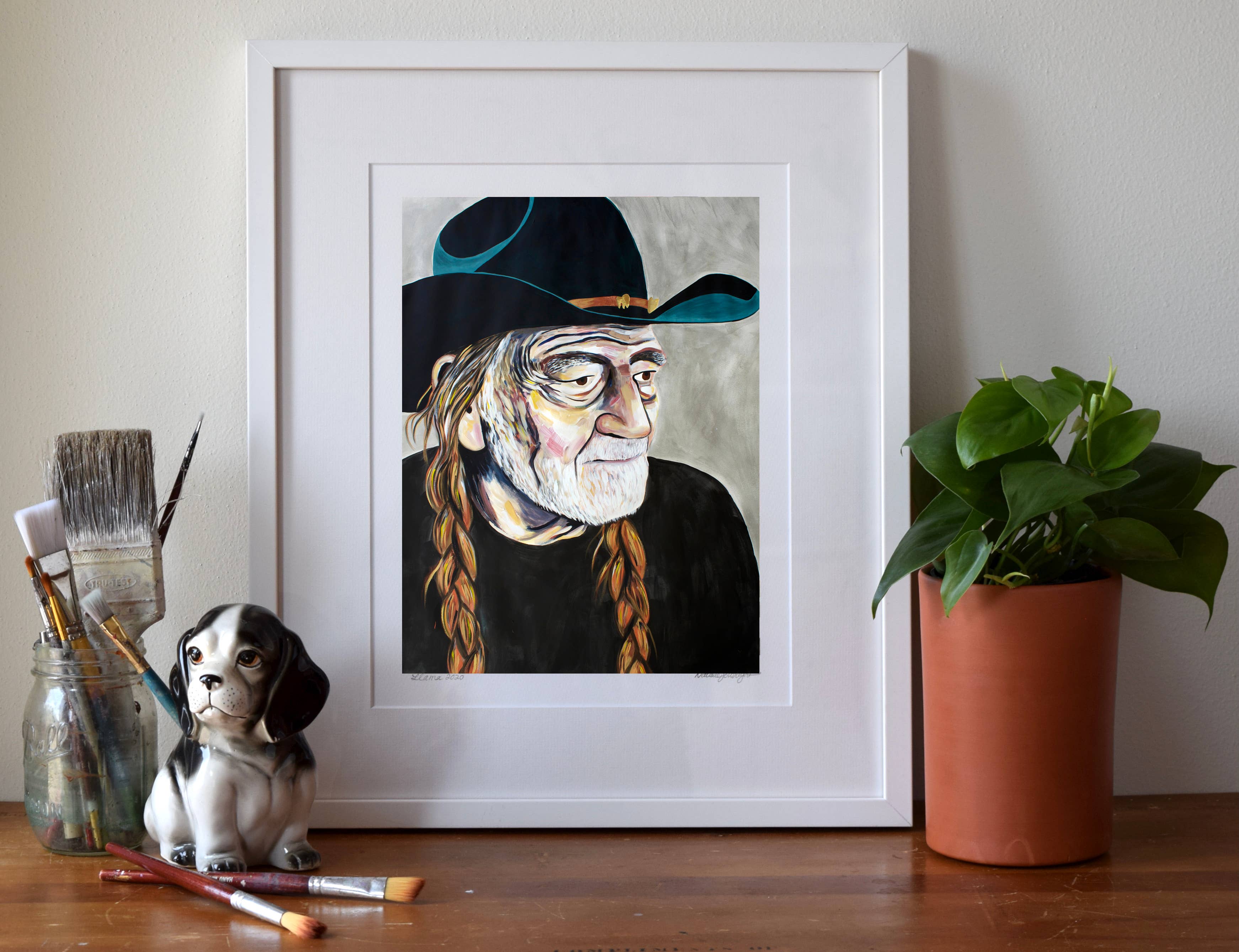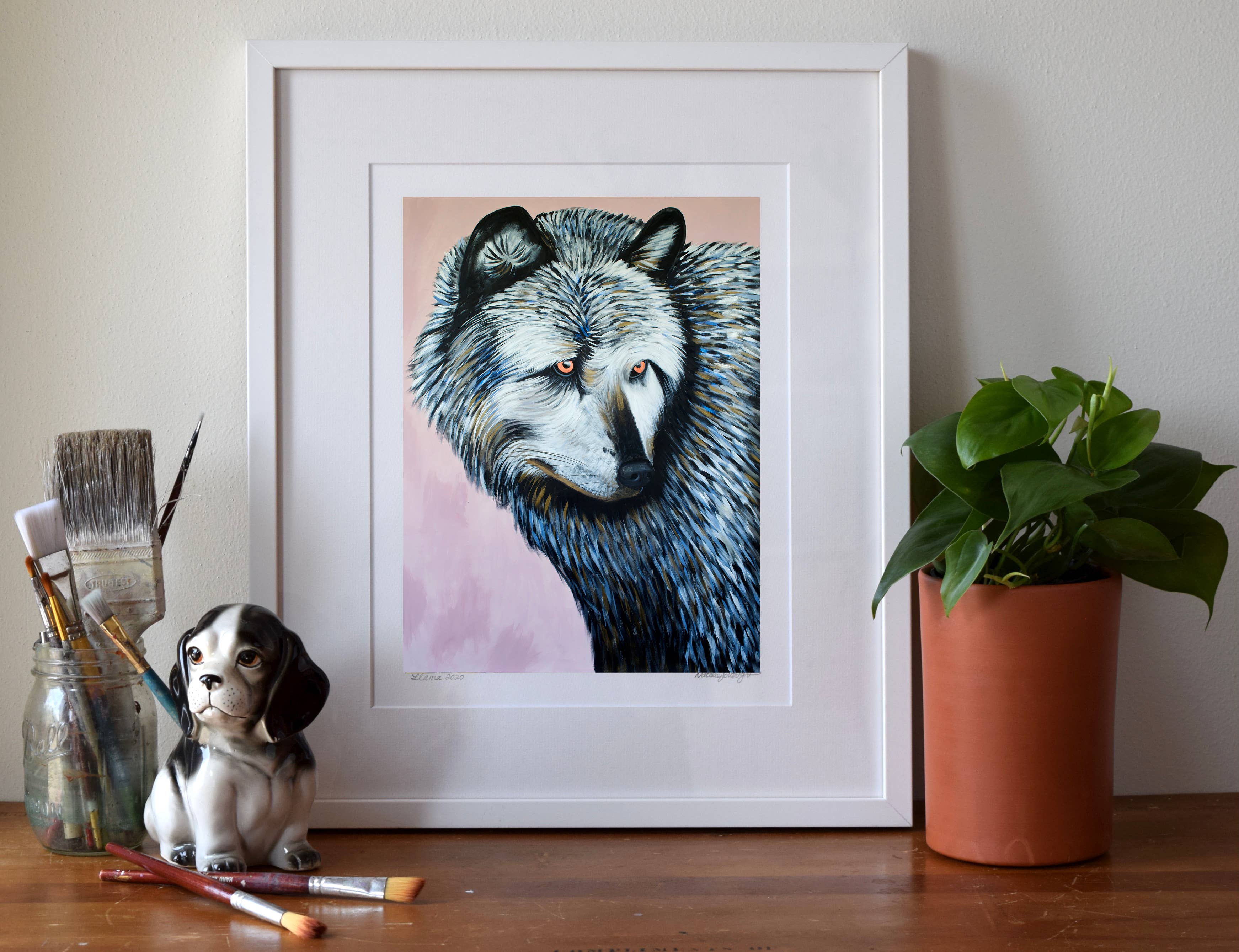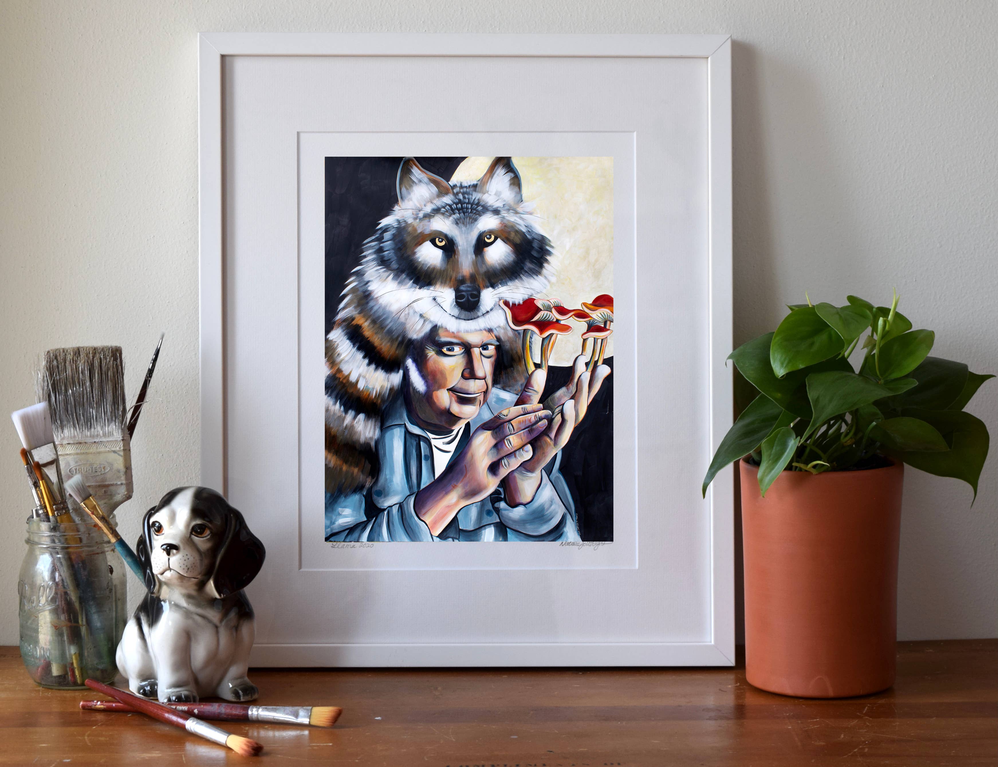 Ik maak museumwaardige kunstdrukken van mijn originele schilderijen - van bestverkopende bosdieren en katten tot portretten en pop-surrealistische werken. Mijn werk combineert beeldende kunst en design, geworteld in zowel traditionele ambacht als hedendaagse verhalen. Ik heb een BFA van het Milwaukee Institute of Art & Design en een MFA in Textielontwerp van de Rhode Island School of Design. In de loop der jaren heb ik kunst gecreëerd die zowel in huizen als openbare ruimtes te vinden is - van mijn "Mustachio" behang, een klassieker van het in Brooklyn gevestigde Flavor Paper sinds 2008, tot grootschalige dierenportretten die door heel Madison, Wisconsin, worden tentoongesteld. Wat mijn merk uniek maakt, is de balans tussen speelsheid en diepgang - stukken die zowel speels als gedurfd zijn, met een gevoel voor humor, tederheid en verbinding met het dagelijks leven. Mijn praktijk is altijd in ontwikkeling, van boswezens en katachtige muzen tot portretten van culturele iconen, wat zorgt voor een frisse en evoluerende collectie voor boetieks en verzamelaars.