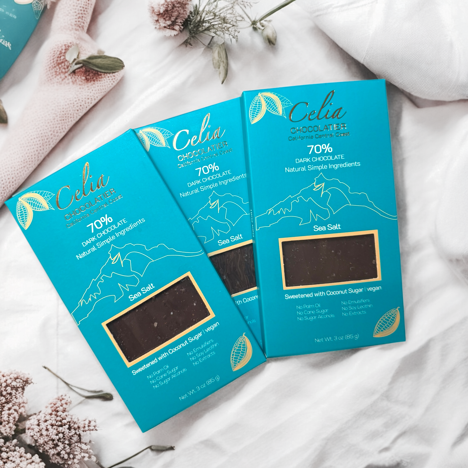 Celia-chocoladerepen bieden een verrukkelijke mix van 100% natuurlijke, voedzame ingrediënten, gezoet met kokossuiker! Geen geraffineerde suiker | Geen toevoegingen | Geen palmolie | Geen soja | Geen zuivel | Geen gluten Gemaakt van bonen uit Ecuador van één enkele oorsprong, bieden onze 70% chocoladerepen een harmonieuze balans, zonder enige zuurheid of bitterheid. Afkomstig van de Centrale Kust van Californië, is Celia een gekoesterde familieonderneming. Opgericht door twee zussen en UC Berkeley engineering alumnae, wiens gedeelde liefde voor chocolade teruggaat tot hun kindertijd, werd Celia geboren te midden van de vreugdevolle viering van de trouwdag van een van de oprichters. Het maken van chocoladebruiloftsgeschenken voor 300 gasten zorgde voor een overweldigende respons, wat leidde tot de officiële lancering van ons bedrijf in 2022. We begonnen op boerenmarkten. Bij Celia specialiseren we ons in het samenstellen van gastronomische ingrediënten die een etherische smaakervaring beloven, die de essentie van onze naam weerspiegelt, 'Celia', wat 'hemel' betekent in het Latijn."