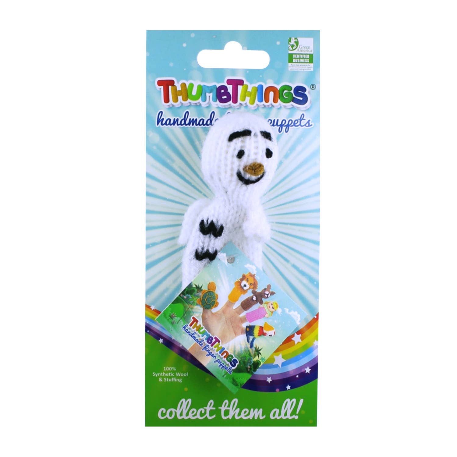 Kinderspelen gaat over leren en ontdekken, we geloven dat batterijen niet altijd nodig zijn voor kinderen om hun fantasie aan het werk te zetten. Dus, als je op zoek bent naar iets anders dan een mobiele telefoon om de kinderen te vermaken, en wilt zien dat ze hun eigen verbeeldingskracht gebruiken voor dom, gezond, leuk, dan moet je ThumbThings Handmade Finger Puppets bekijken... Er zijn meer dan 200 schattige personages om mee te spelen, te verzamelen, te ruilen en te delen! ThumbThings Vingerpoppen prikkelen de verbeelding en inspireren creativiteit. Kinderen zullen hun elektronische gadgets neerleggen en uren lang met elkaar communiceren en pretentiespelletjes spelen, allemaal terwijl ze waardevolle sociale vaardigheden leren! Al onze vingerpoppen zijn met veel liefde handgemaakt en ethisch ingekocht. Een deel van onze missie is om mensen te inspireren na te denken over hun dagelijkse aankopen en over hoe het kiezen van verantwoord gemaakte producten de wereld kan veranderen. Elke vingerpop is handgemaakt door ambachtelijke vrouwencollectieven op het platteland van Peru en elke aankoop ondersteunt bestaansgemeenschappen.