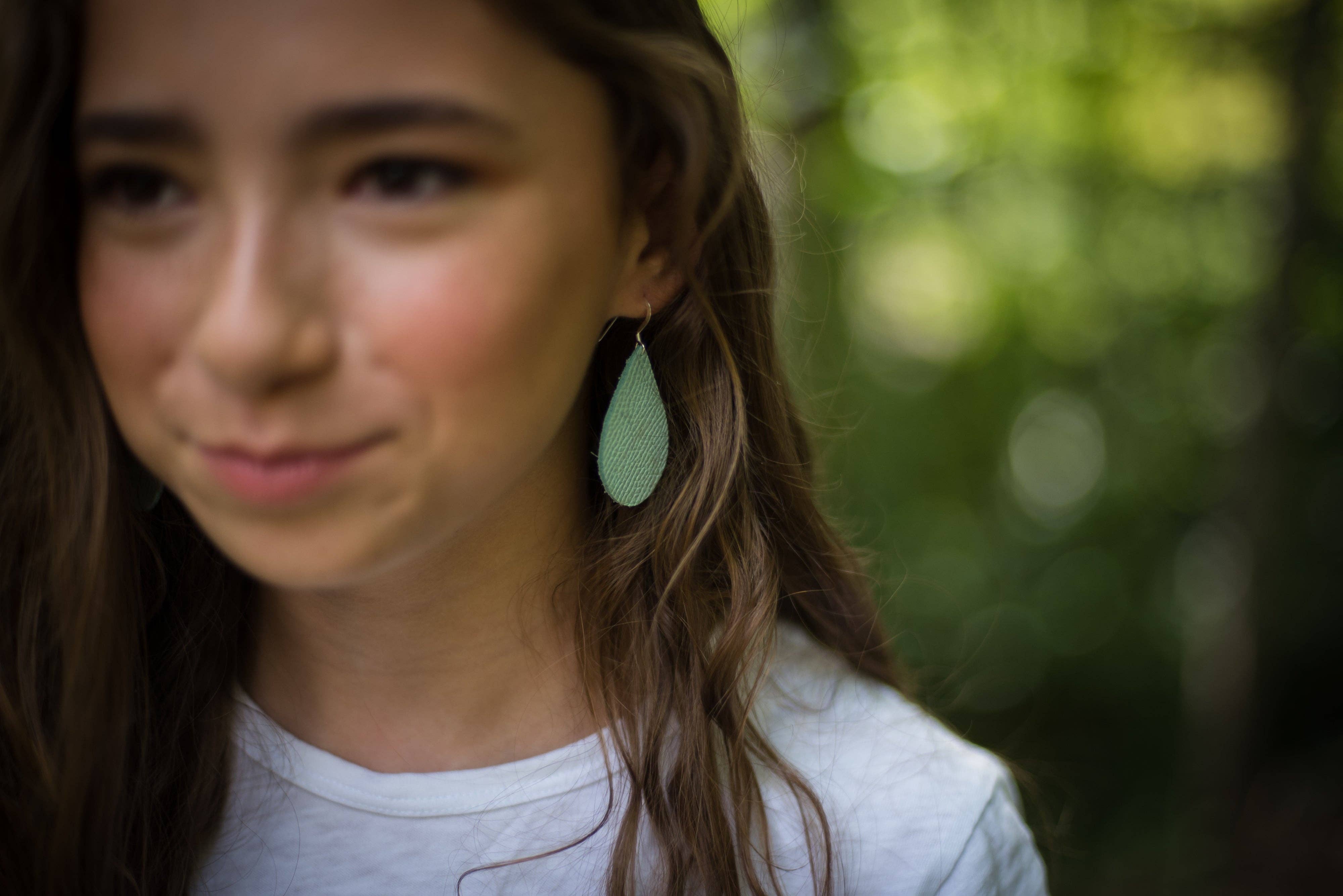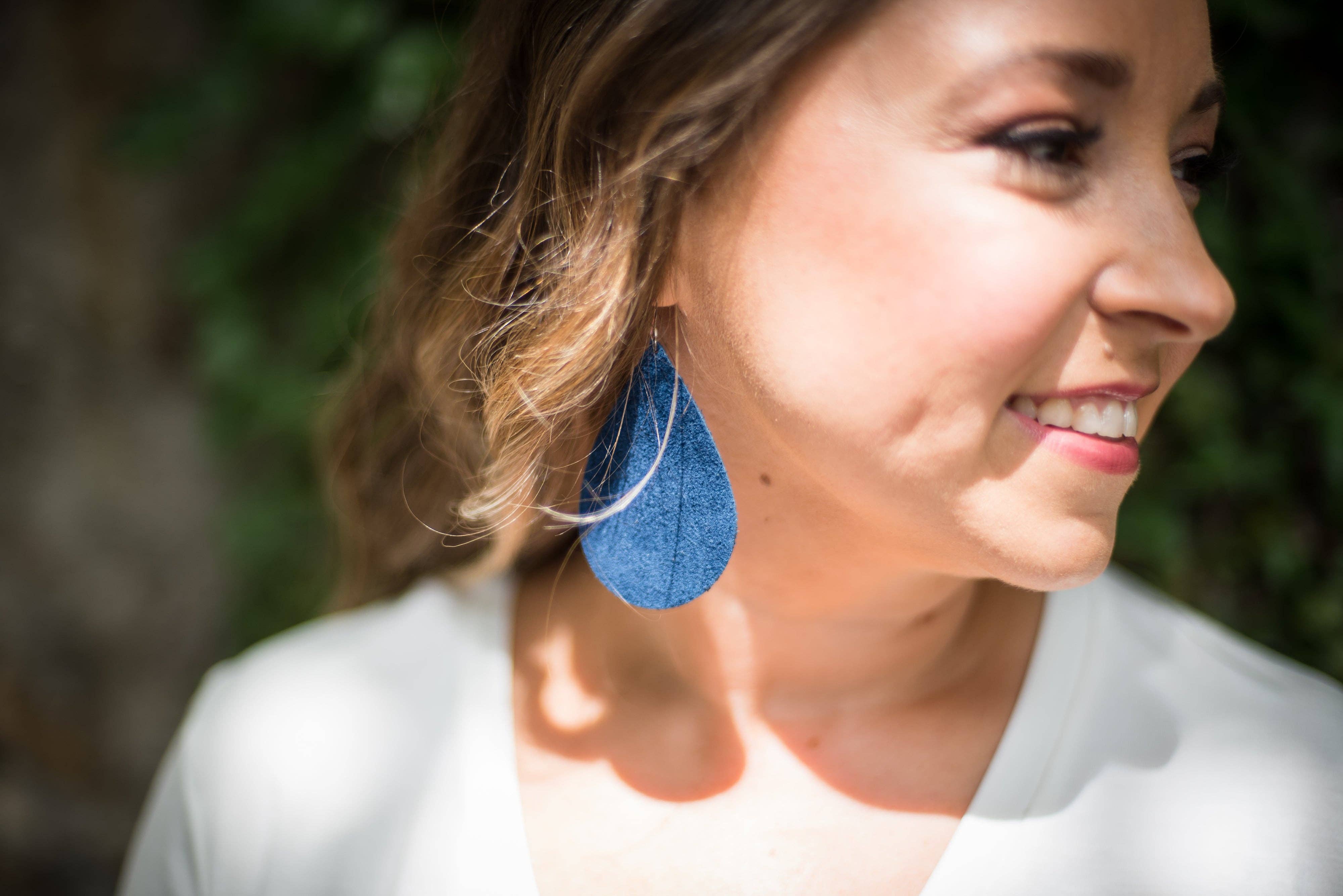 Darby Warren, eigenaar en maker van Sparkles and Stags maakt leren oorbellen in de bergen van WNC. Haar man smeedde verschillende van de matrijzen die ze gebruikt.