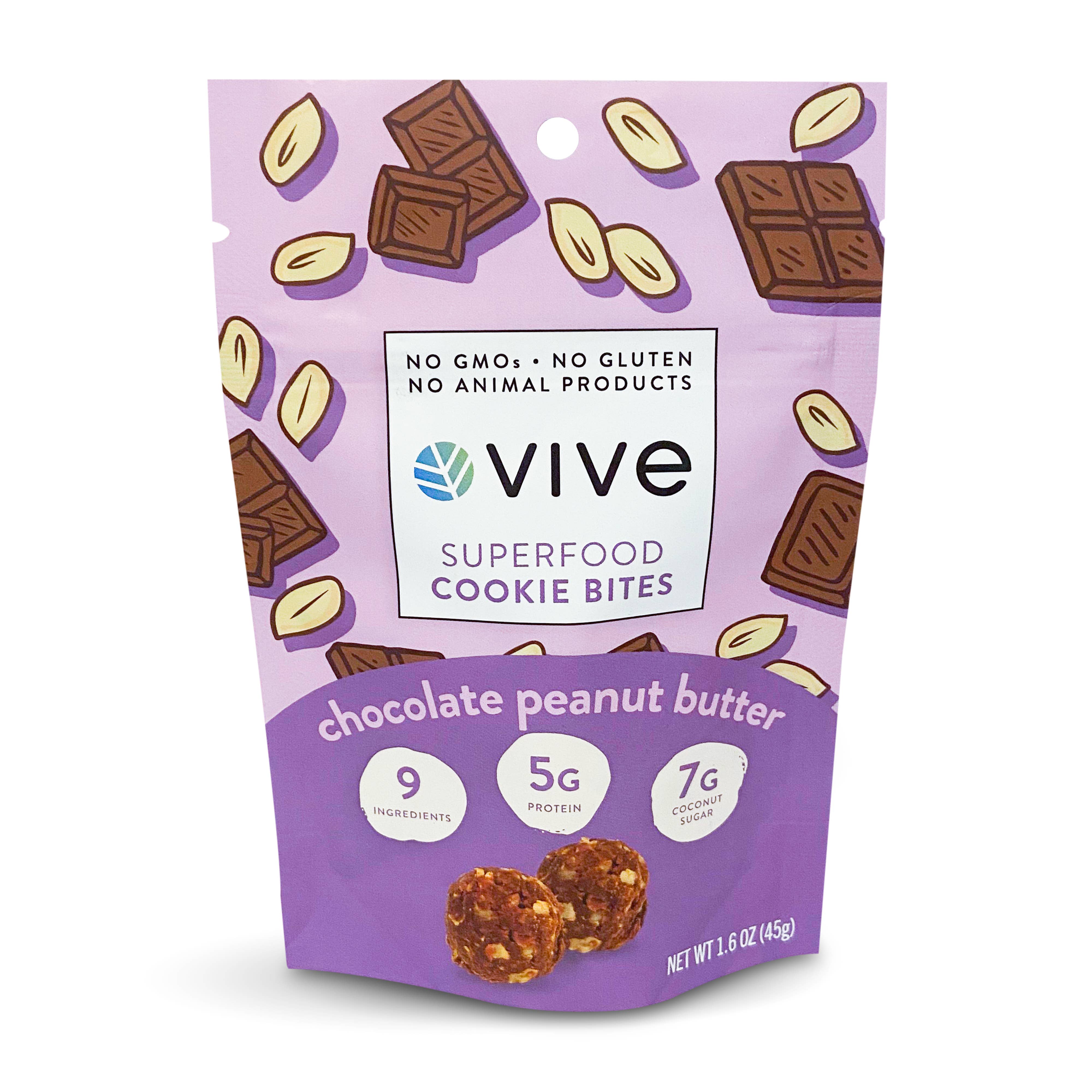 Hallo daar! Shayna, Vive oprichter hier. Ik heb Vive samen met mijn moeder gemaakt om het voor mensen eenvoudiger te maken om gezonde keuzes te maken - als je houdt van wat je eet, is het gemakkelijk om voedzaam voedsel te kiezen. We hebben onze Cookies Bites gemaakt met dit in gedachten, waarom zou je een saaie voedingsreep eten als je een koekje kunt eten? Vive heeft de categorie voedingsrepen opnieuw uitgevonden met ons eenvoudige ingrediënt, onweerstaanbare Superfood Cookie Bites. Al onze snacks zijn: -glutenvrij -NON GMO -veganistisch -laag in kokossuiker. We laten ons inspireren door klassieke lekkernijen en updaten ze voor de moderne levensstijl. Onze Superfood Cookie Bites zijn perfect voor reizen, sporten, een snel ontbijt of een snack op elk moment. Al onze producten hebben een nostalgische, zachtgebakken koekjessmaak en zijn gemaakt met 10 of minder schone ingrediënten. Ze zijn verpakt in hersluitbare zakjes van grab-and-go-formaat voor portiegecontroleerde wellness die overal naartoe gaat.