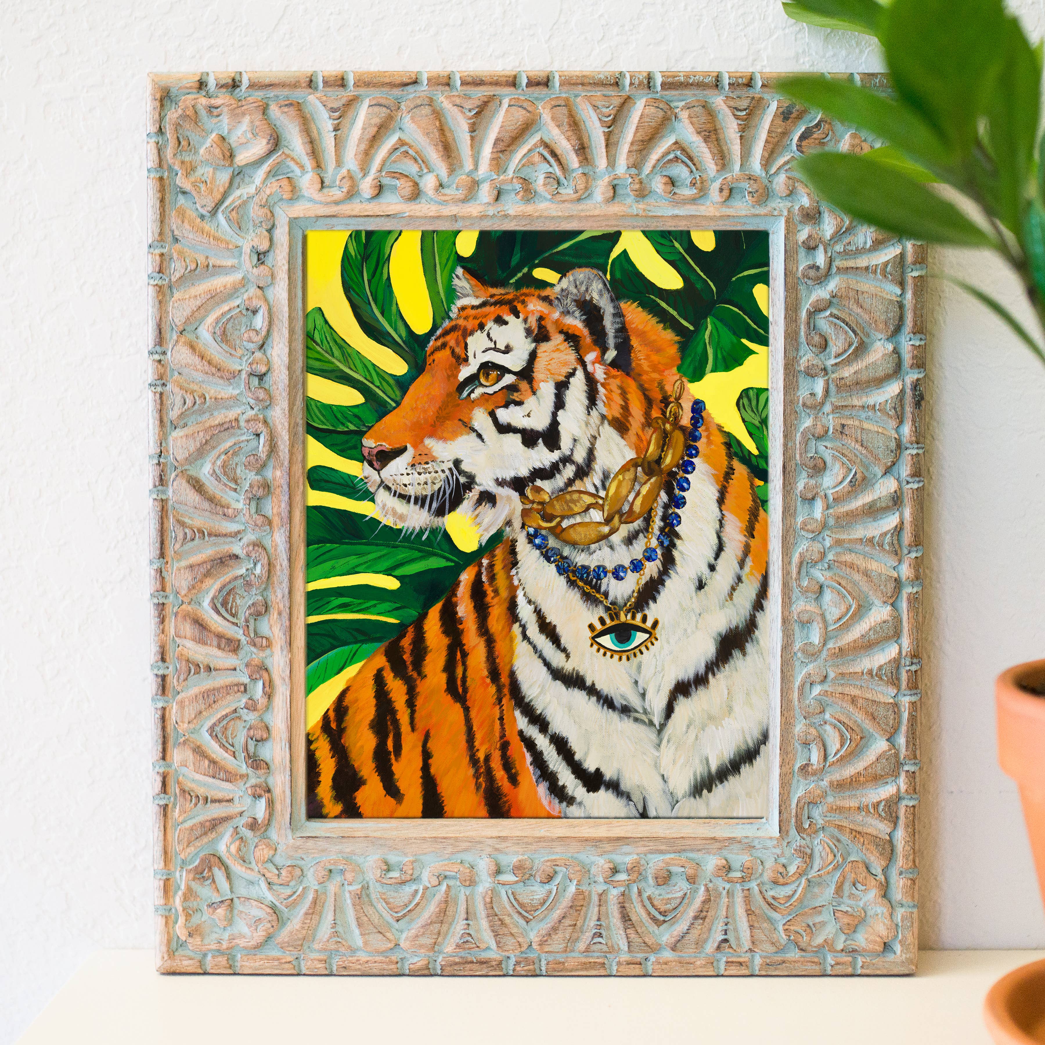 The Stationery Bakery begon in de eetkamer vanuit ons appartement. Ik begon met het ontwerpen van unieke briefpapier voor verschillende klanten en begon toen wenskaarten en prints te maken. In de afgelopen jaren illustreert mijn werk gedurfde kleuren en schilderachtig penseelwerk. We zijn gegroeid van het aanbieden van wenskaarten en prenten tot nu ontwikkelende en home decor kunstprints en originele schilderijen. Mijn werk bevat bohemien patronen en dieren geschilderd in eclectische omgevingen.