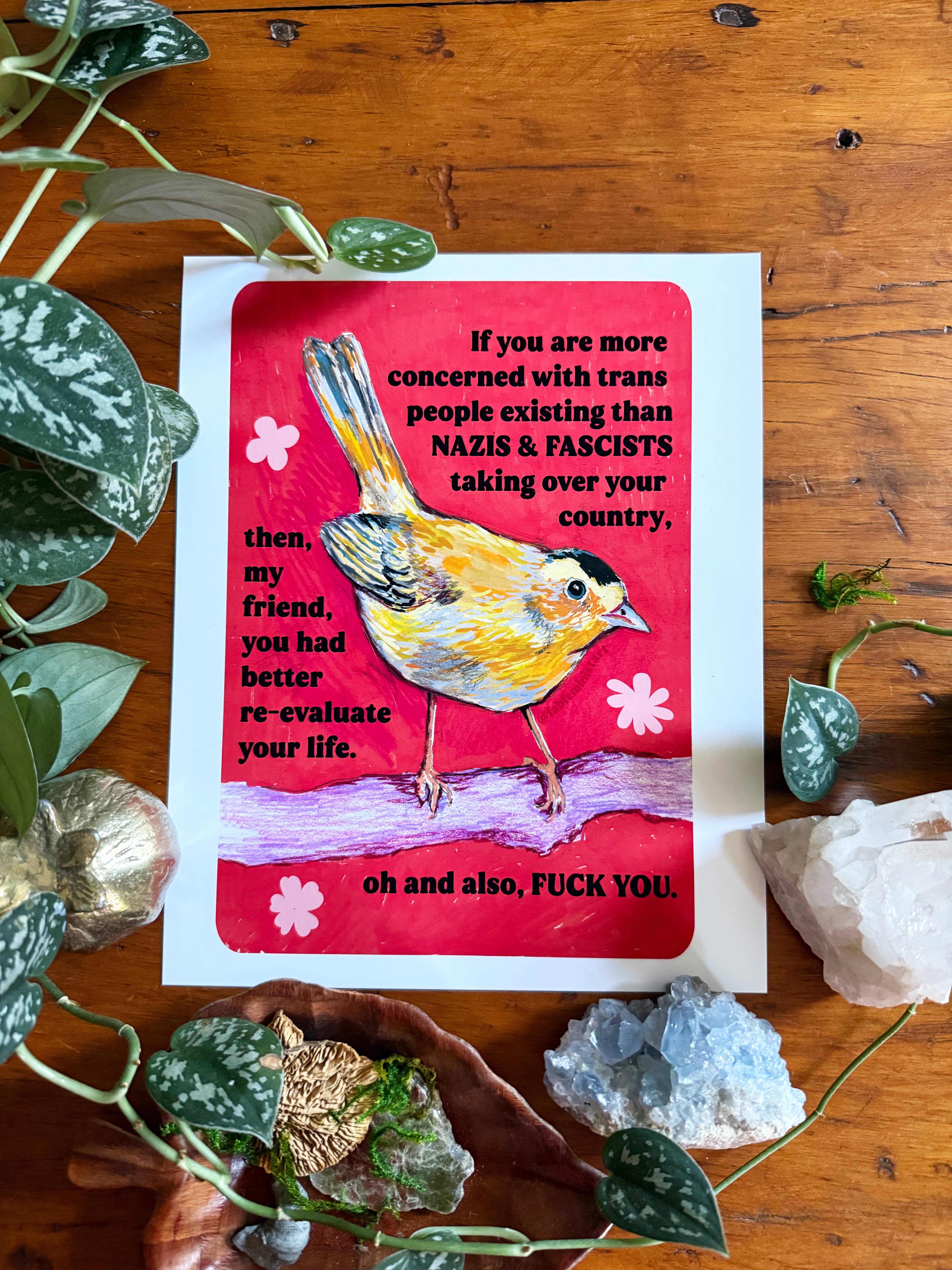 Fabulously Feminist is opgericht door kunstenaar Callie Garp & is gevestigd in Pittsford, New York (net buiten Rochester). Callie is een queer vrouwelijke feministische ondernemer, geïnvesteerd in het creëren van ethische goederen die mensen vieren en bevestigen die anders gemarginaliseerd zijn in hun dagelijks leven. Elk Fab Feministitem bevat een origineel kunstwerk, ontworpen om anderen te inspireren aardiger te zijn voor zichzelf en de wereld. Fabulously Feminist draait om het creëren van kunst voor sociale en ecologische rechtvaardigheid. Met mijn esthetiek geïnspireerd door de natuur en mijn liefde voor tuinieren hoop ik vreugde in de huizen van mensen te brengen en een gevoel van verbondenheid en verbondenheid te bevorderen. We werken er allemaal aan om ons beste zelf te worden, en vooral onszelf lief te hebben voor precies wie we zijn. Ik hoop dat mijn kunst anderen helpt op die reis. Dit creatieve leven kan erg druk en uitdagend zijn, maar de magie gebeurt op dat moment wanneer iemand een Fabulously Feminist print oppakt en zegt: 'Heel erg bedankt - je hebt geen idee hoeveel ik hier vandaag aan herinnerd moest worden. '