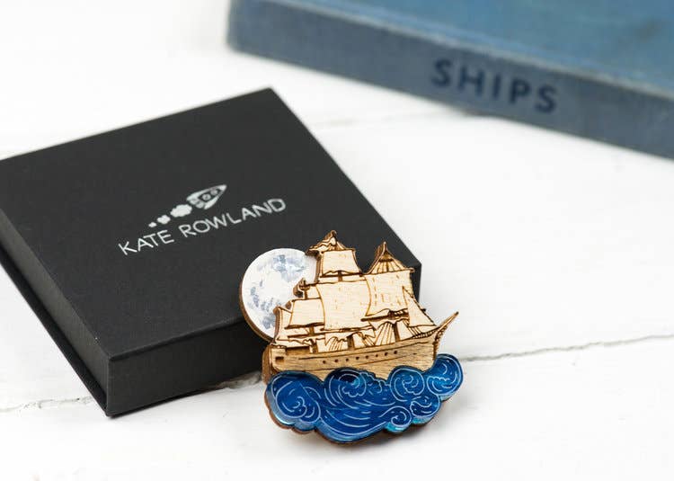 Kate is een sieradenontwerper en -maker, werkzaam in Buckinghamshire, VK. Ze maakt al haar sieraden van hout, vaak met acryl, bladgoud en halfedelstenen voor details. Duurzaamheid is erg belangrijk voor dit kleine bedrijf, al het hout is FSC-goedgekeurd en elk stuk is ontworpen met de intentie om zo min mogelijk afval te produceren. Kate is opgeleid als illustrator, en dit komt tot uiting in haar sieraden, met gegraveerde tekeningen en details; dit zijn moderne, speelse sieraden geïnspireerd door oude artefacten, architectuur en ornamenten. Kate werkt in een studio thuis, waar alles in eigen huis wordt ontworpen en gemaakt met behulp van een lasersnijder.