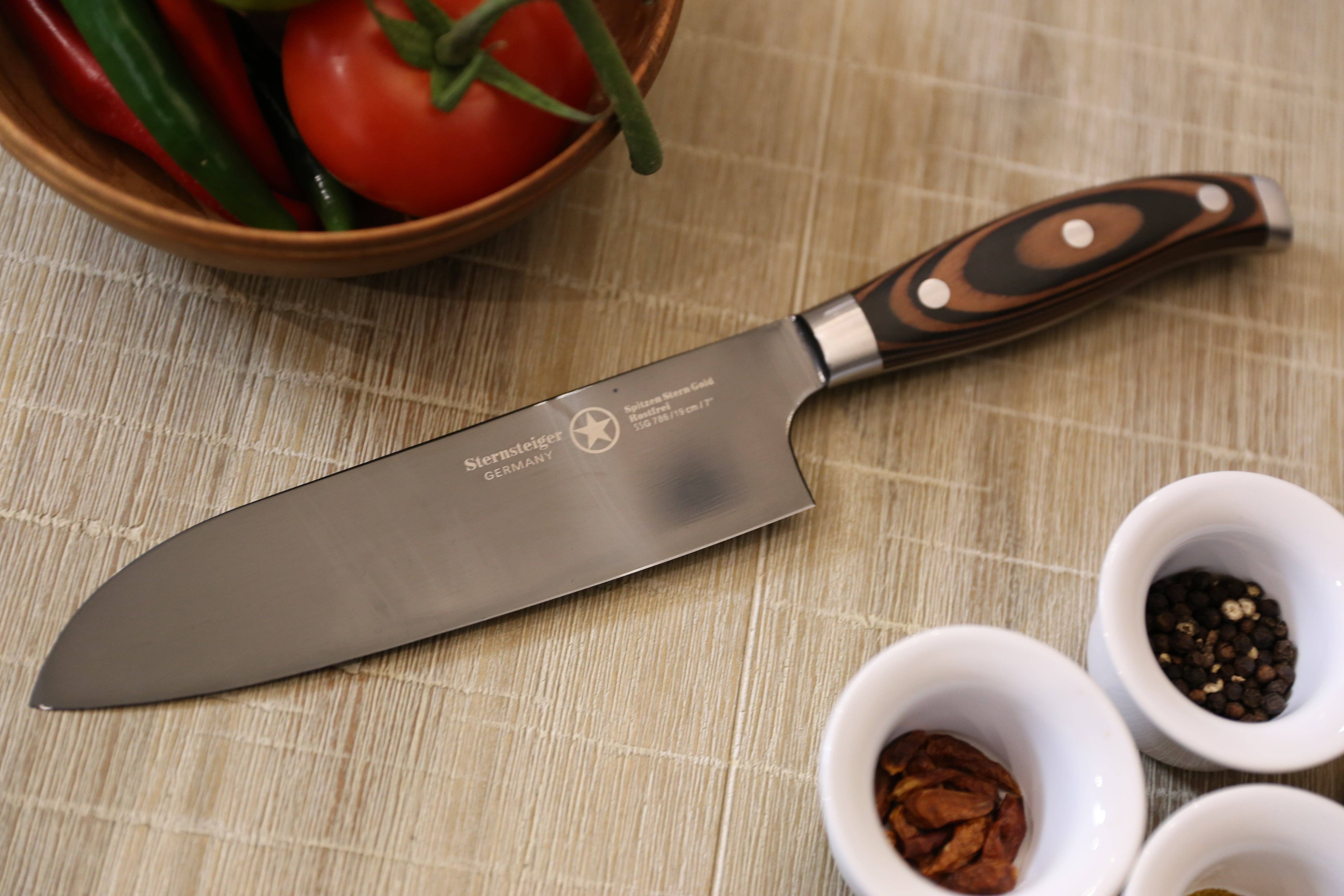 Sternsteiger is gevestigd in de wereldberoemde stad van bestek en messen Solingen (Duitsland) en is een productie- en retailbedrijf voor consumptiegoederen dat is opgericht met slechts één doel voor ogen: het leveren van hoogwaardige handgemaakte producten uit de stad Solingen. Dit doel is onze missie geworden en je kunt het voelen in al onze producten. Onze verschillende productlijnen combineren ultramoderne technologie, tijdloos design en professioneel vakmanschap op een manier die al geruime tijd niet in Solingen is gezien. Onze producten worden door onze klanten living Legends genoemd en ondersteunen de lokale industrie en vakmanschap om de traditie van de stad van messen levend te houden. Deze toewijding aan traditie en kwaliteit heeft ons verschillende prijzen opgeleverd en onze ontwerpen zijn geselecteerd door de German Design Council. Maar het belangrijkste is dat het wordt gevoeld en beloond door onze klanten die onze producten graag thuis of op het werk gebruiken in een professionele keuken.