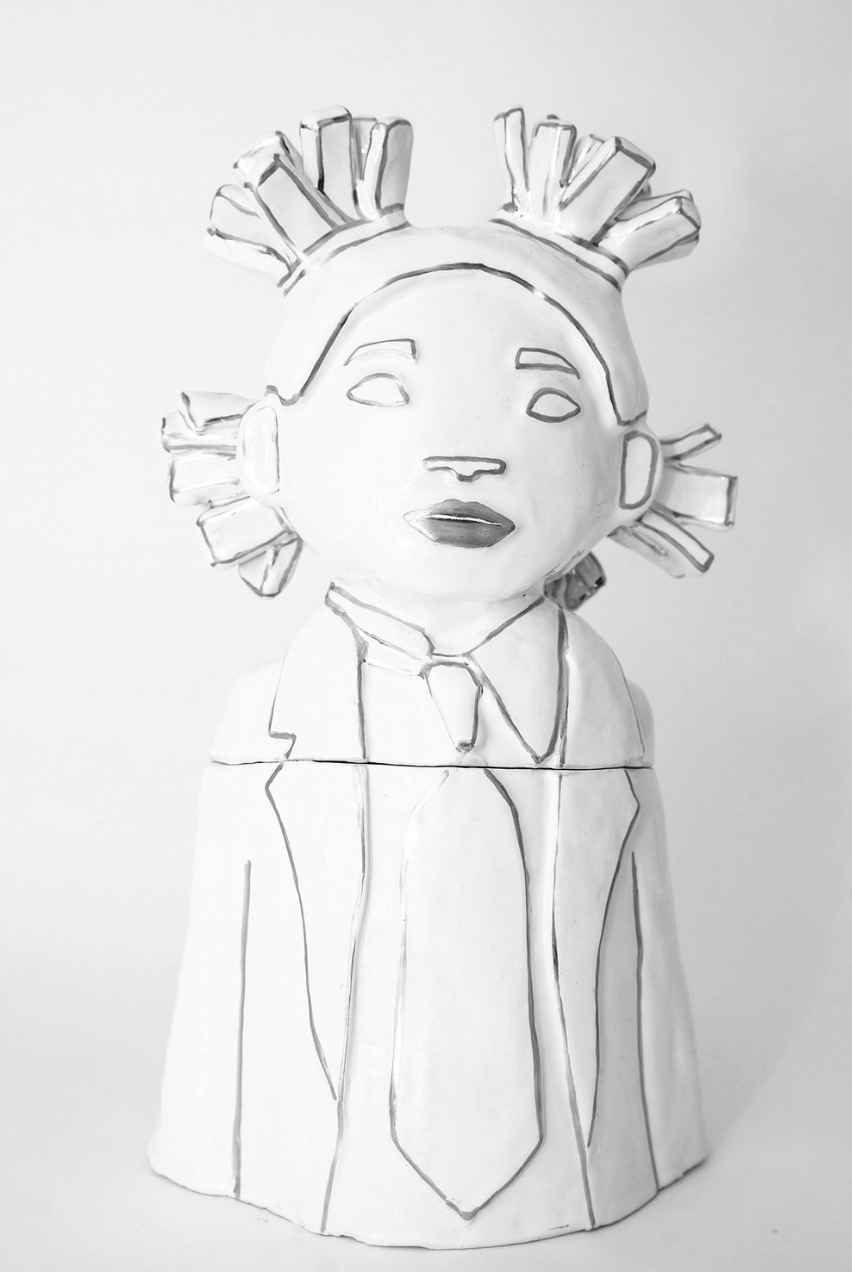 Op een dag werd er een pakketje bezorgd bij Hazy Mae, en toen ze het opende vond ze een jongensbeer Cookie Jar met een liefdesbrief erin. Ze was meteen verliefd: het formaat, het karakter, de functionaliteit en ƩƩn koektrommel werden een gigantische collectie. Toen ze op een dag naar alle Cookie Jar-personages om haar heen keek, besloot ze dat ze er zelf een wilde maken, waarbij ze de speelse, merkwaardige stijl kon behouden die ze zo leuk vond aan de koekjespotten uit de jaren 20-50 - en een frisse benadering kon kiezen met een monochroom kleurenpalet en modieus en charmant ontwerp van het personage. Nu bouwt en schildert ze elke leuke en functionele Cookie Jar, Vasie, Vasette en Wish Jar met de hand voor mooie huizen, winkels, interieurontwerpers en showrooms in het hele land.