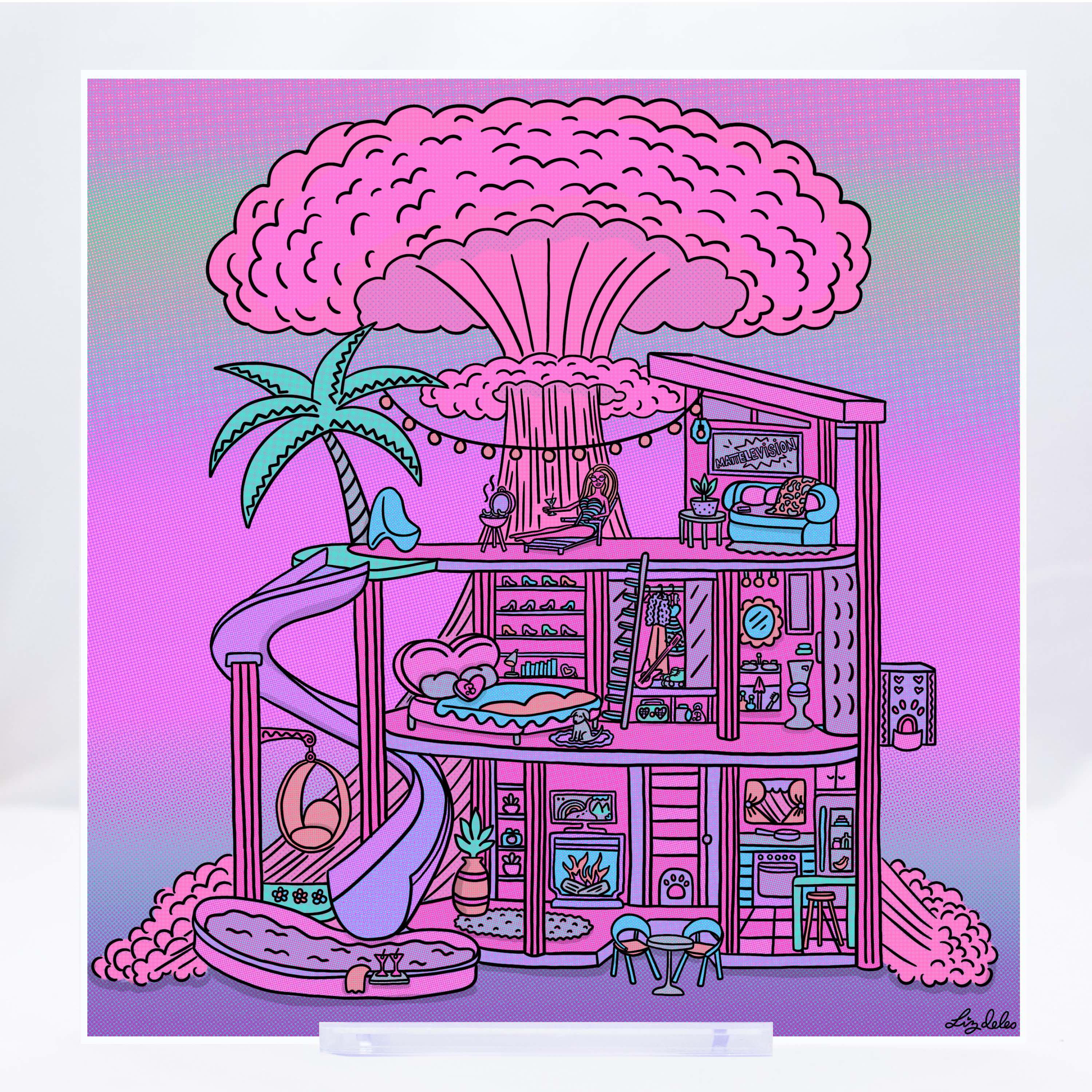 Liz Deleo is een multidisciplinaire kunstenares die leeft in haar eigen cartoonwereld. Ze probeert altijd de kloof te overbruggen en brengt haar tijd door met het illustreren en schilderen van haar met pastelkleuren en sprankelingen gevulde brein tot een bestaan zodat anderen het kunnen delen. Haar werk is sterk beïnvloed door popcultuur, gaming, reizen, geestelijke gezondheid, skatecultuur en eten, en dat zie je allemaal terug in haar prints, stickers en meer!